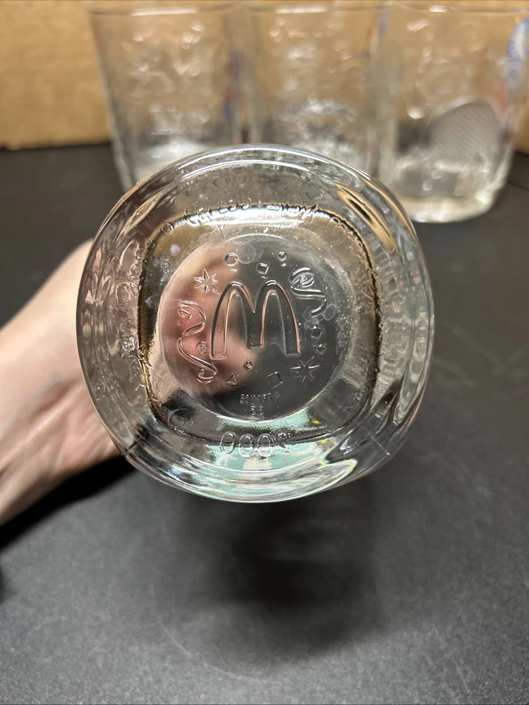 2000 McDonald's Walt Disney World Mickey Mouse Glass Cups/Tumblers -- Set of 4 This set of four glass cups/tumblers is a must-have for any Disney fan. Featuring the iconic Mickey Mouse, these cups were manufactured in France and are a perfect addition to any Disneyana collection. With a height of 4 1/2" and a width of around 3", these glasses are the perfect size for enjoying your favorite beverage. Perfect for collectors or as a gift for any Disney lover, these glasses are sure to bring a touch of magic to your day. These glasses have no chips or cracks and the graphics are in great condition. Please view all photos.