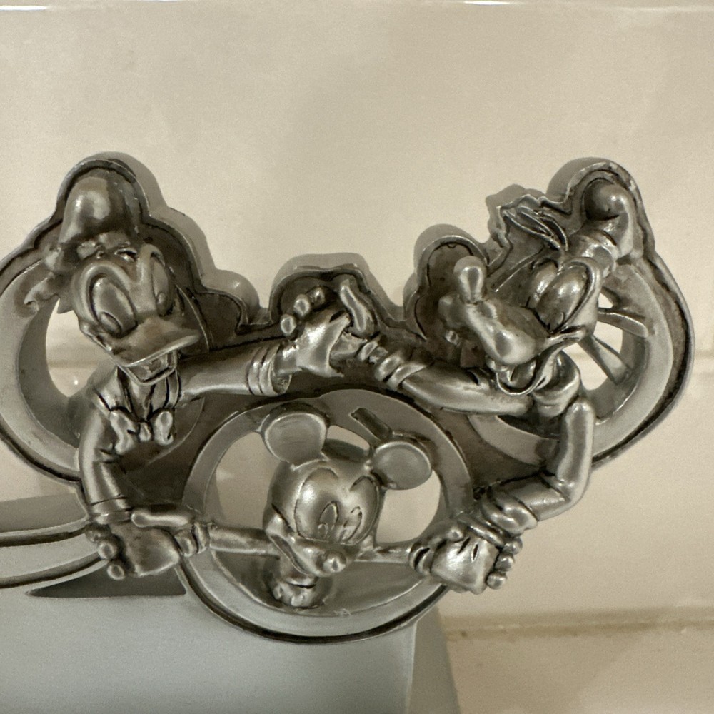 This collectible Walt Disney World sculpture features Mickey Mouse and Donald Duck holding hands, celebrating the new millennium in the year 2000. The intricate details of the sculpture make it a unique addition to any Disneyana collection. With its contemporary design, it is sure to be a conversation starter. The sculpture is a great reminder of the timeless friendship between the iconic Disney characters.