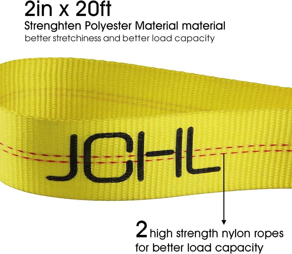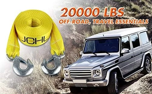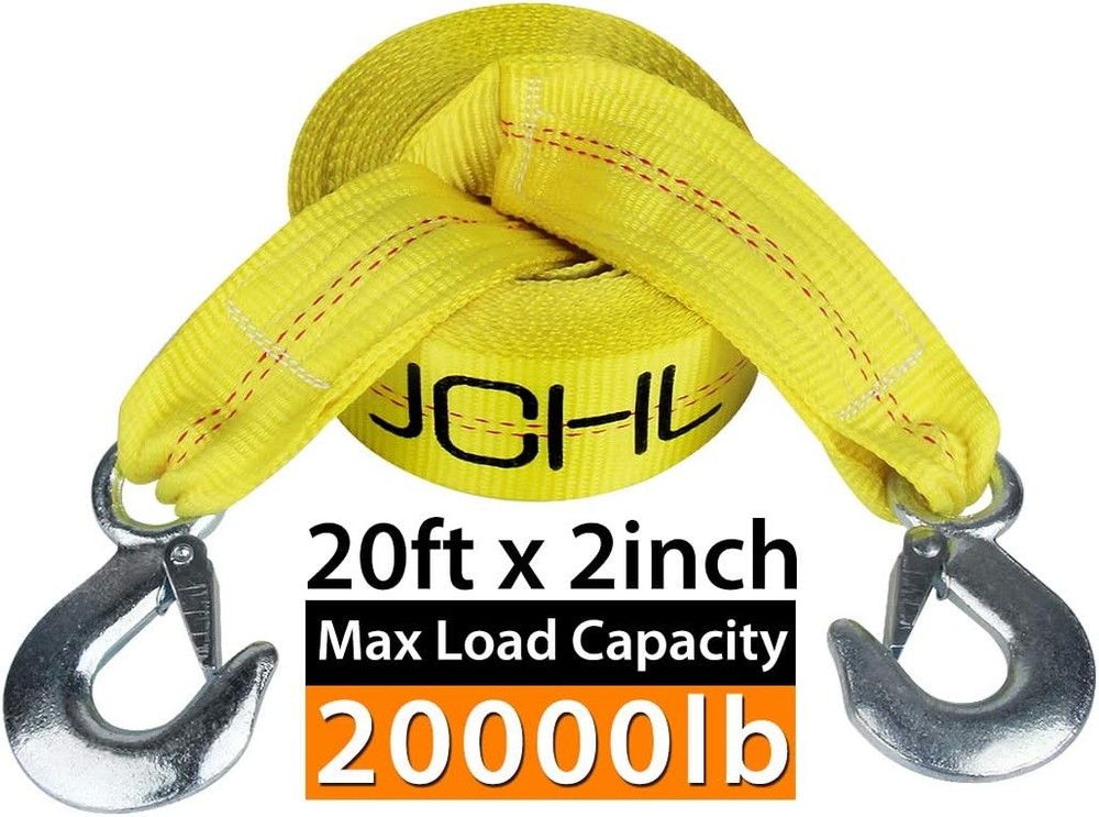 Nylon Tow Strap with Hooks 2”x20’ Car Vehicle 2x20 inch, 2inX20Ft-20,000LB Product Details Size: 2x20 inch Material: Nylon Color: 2inX20Ft-20,000LB Brand: JCHL Vehicle Service Type: Passenger Car, SUV Load Capacity: 20000 pound Fastener Material: Nylon Fastener Type: J-Hook Tensile Strength: 20000 Pounds Number of Pieces: 1 Product Dimensions: 240"L x 2"W Manufacturer: JCHL Unit Count: 1.0 Count Item Weight: 1.75 pounds Is Discontinued By Manufacturer: No Size: 2x20 inch Material: Nylon Color: 2inX20Ft-20,000LB Brand: JCHL Vehicle Service Type: Passenger Car, SUV 2 inch x 20 feet Yellow High Strength Polyester Strap, 20,000Lb Break Strength Capacity Extra heavy-duty tow strap made from high tensile strength nylon which makes the product to withstand pressure. 20,000 lbs towing capacity ensures that you can tow just about anything you need. Universal Use: Heavy duty tow strap 3"*20 ft, 20,000 LB capacity making it reliable for all possible needs. There's a wide range of uses for Vehicle towing, Pickup Trucks, ATV, SUV .Also you can use it as a tree saver strap or winch extension strap. 2 forged safety hooks with retaining clips, ZINC coated finish on hooks offer three times more corrosion resistance.