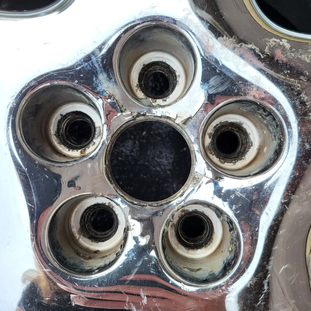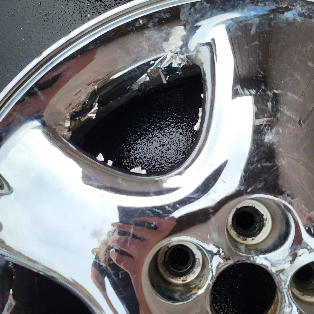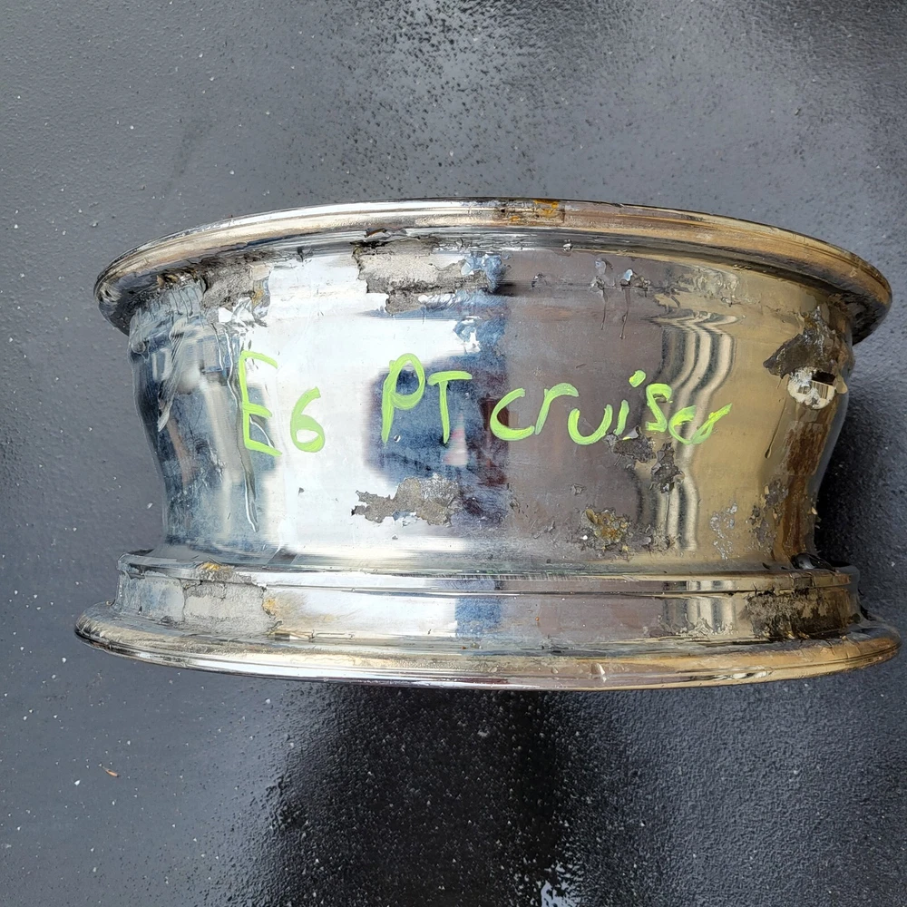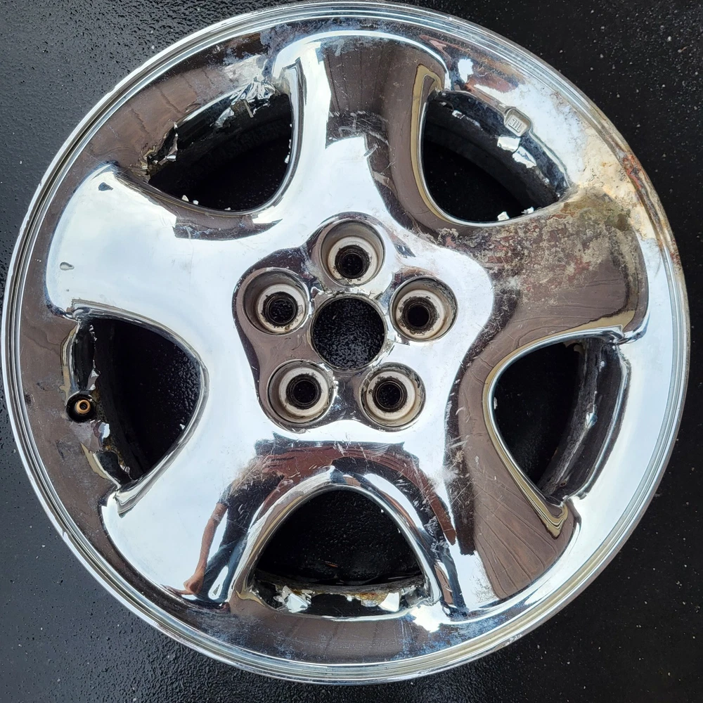 2001 - 2002 CHRYSLER PT CRUISER 16" CHROME ALUMINUM. 16X6, 5X100 BOLT PATTERN. THIS IS A USED OEM WHEEL IN COSMETICALLY FAIR BUT GOOD USEABLE CONDITION, WITH PEELING, SCUFFS/ CURB RASH & OXIDATION. PLEASE SEE PICTURES. THE ONE PICTURED IS THE ONE YOU WILL RECEIVE. 6 MONTH WARRANTY, 30 DAY RETURN POLICY. FREE SHIPPING WITH UPS GROUND. SAME DAY HANDLING.