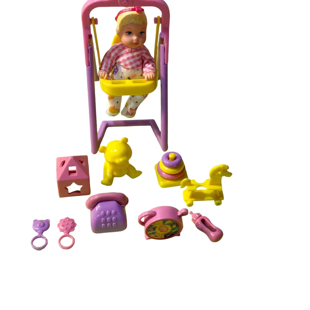 Adorable vintage Krissy playset - the little sister of Barbie. Swing ‘N Play set circa 2001. Includes most original parts as shown. See photos for details. 2001 Krissy Swing 'N Play Barbie Playset Baby Nursery Set Vintage