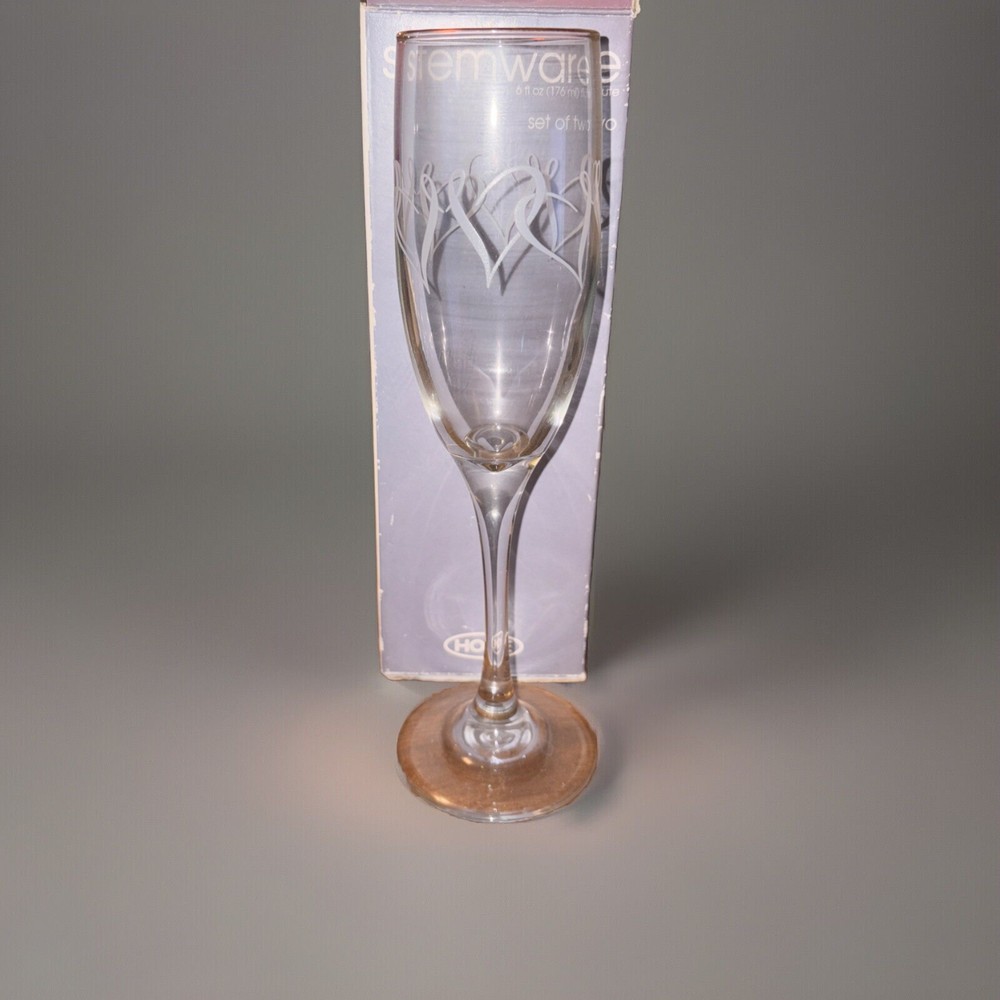 Elevate your toasting experience with these elegant 2001 Target Home Celebration Flutes. Crafted from clear, lead-free glass, these flutes feature a charming etched hearts pattern that adds a touch of romance to any occasion. The two-piece set includes both flutes and is perfect for sharing a celebratory moment with someone special. Each flute has a capacity of 6 fluid ounces and is designed for adult use. The set is made in the United States and is suitable for all occasions. Whether you're celebrating a special event or simply enjoying a romantic dinner, these champagne flutes are the perfect addition to your drinkware collection.