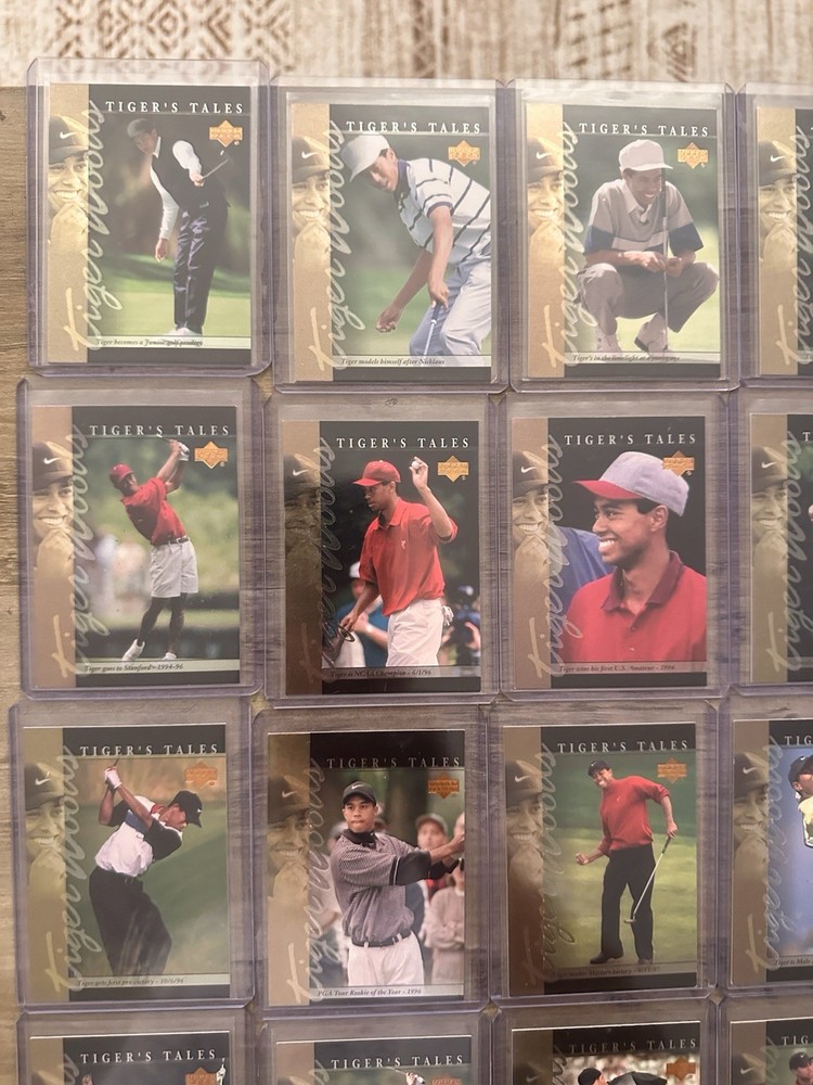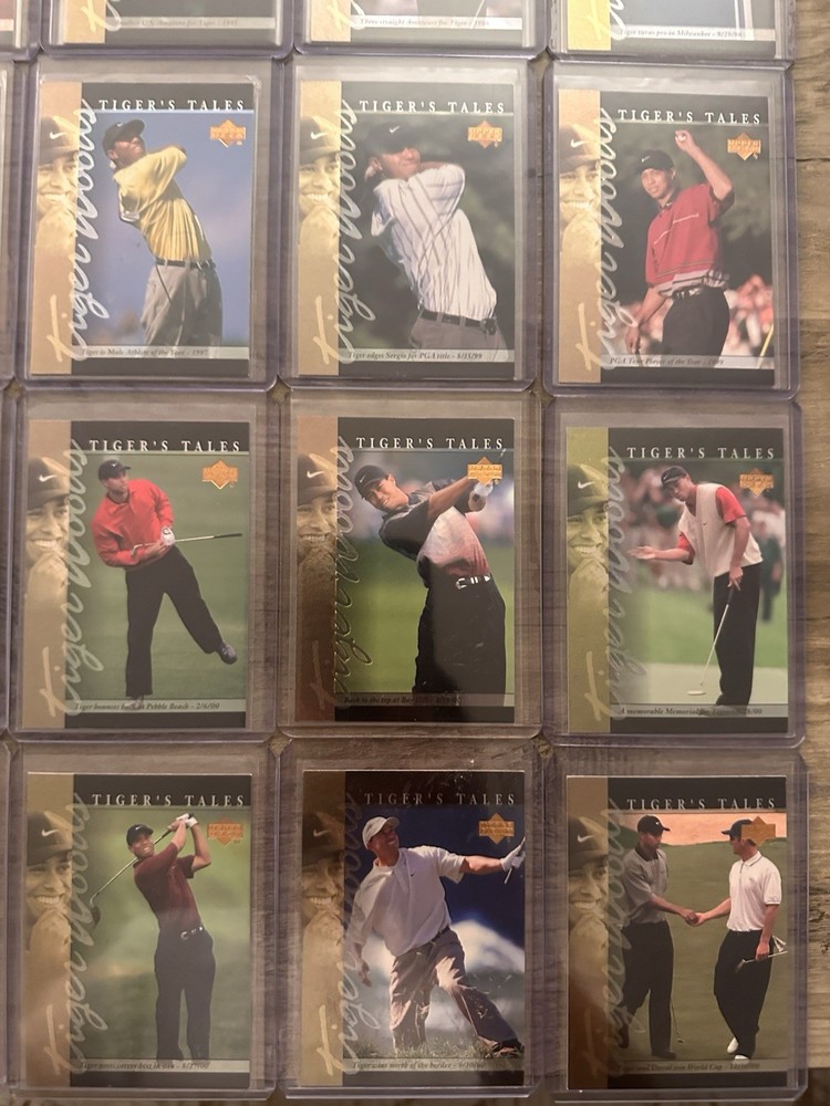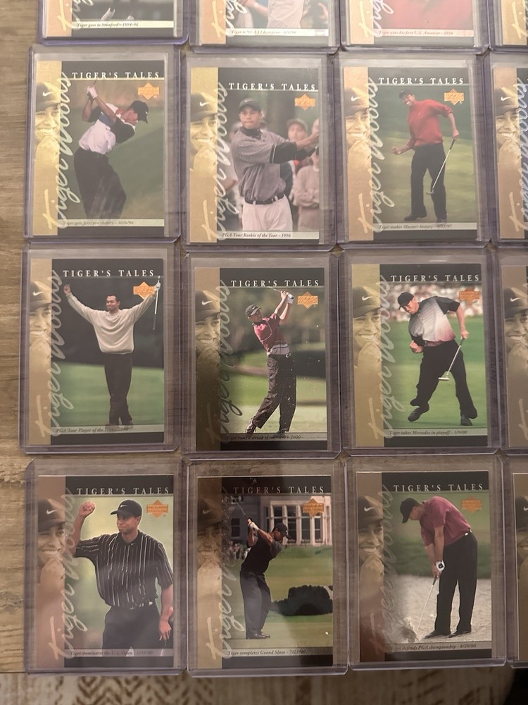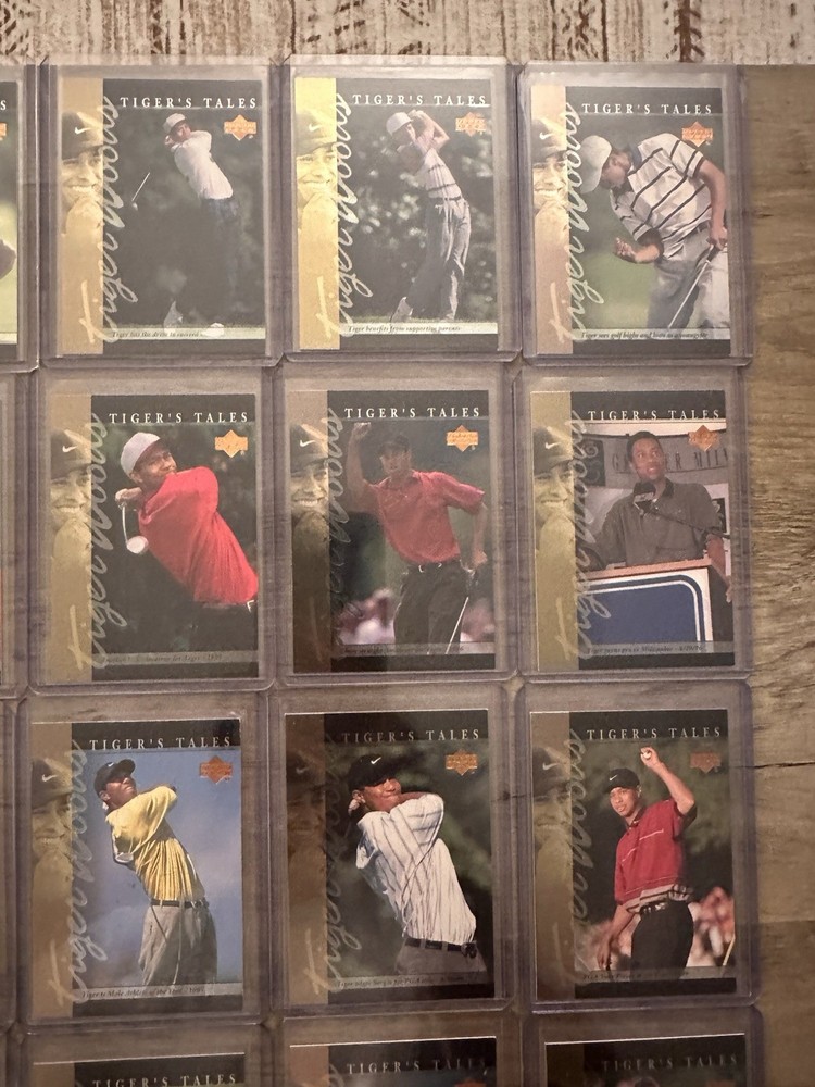 The 2001 Upper Deck Golf Tiger’s Tales Complete Set 1-30 Tiger Woods Rookie Card RC is a highly sought-after collection of sports trading cards featuring Tiger Woods in his early career on the PGA Tour. This set includes 30 standard-sized cards manufactured by Upper Deck in 2001, showcasing the talented golfer in his rookie season. The cards are original and in English, making them a valuable addition to any golf card collection for fans of the United States team.