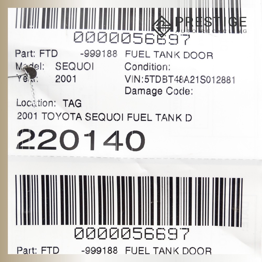 Prestige Auto Parts - Product Page Local pick-up available at 3400 Sunrise Blvd, Rancho Cordova, CA 95742 2001–2004 TOYOTA SEQUOIA Fuel Filler Door Lid Fuel Tank Door Silver 77350-0C010 Not sure if the part fits? Send us your VIN, and we'll verify compatibility for you! Item Condition The item is in good condition, fully operational, and demonstrates normal signs of use. Please note that, as a used part, it may show light scuffs, scratches, or other minor imperfections, as shown in the photos provided. WHEN YOU BUY FROM US YOU AGREE TO OUR TERMS AND CONDITIONS: It is the buyer's responsibility to carefully inspect all of the photos for details and/or request more photos if necessary, what you see in photos is exactly what you will receive. Before purchase, the buyer MUST verify that the item will fit their vehicle. PLEASE NOTE: Make sure to verify fitment independently with your local dealer, information in the “compatibility” section is generated by eBay Motors, not from us. IF YOU HAVE ANY QUESTIONS, CONTACT US VIA EBAY MESSAGING BEFORE PURCHASING. Payment We accept PayPal, VISA, MasterCard, Discover, and American Express. Sales tax collected by eBay where applicable. For local orders, pay on pickup available. Shipping Most items ship within 24 hours of payment; items paid for on the weekend or holidays ship on the following business day. We ship by FedEx, UPS, USPS, and regional freight/LTL carriers, whichever option is most affordable and/or faster. Shipping prices for ground apply only to the continental United States. Anywhere else is considered international shipping and will have an international shipping rate. Any international customs fees are the responsibility of the buyer. Any free shipping we offer is for the continental United States only. If you are from Hawaii, Alaska, or a Territory of the United States, please request a shipping total before bidding and we will do our best to keep the cost low. For orders placed outside of the United States, we ship ONLY through the eBay Global Shipping Program. If you are outside of the US, use the eBay international shipping tool above to receive a price for shipping costs. Local pickup and delivery options also available, please contact us for arrangements. PLEASE NOTE: Oversized items like engines, transmissions, bumpers, doors, hoods, trunk lids, fenders and other similar items will be shipped via Freight Shipping and MUST be shipped to a business address with a dock or forklift access; otherwise, liftgate and/or residential delivery fees may apply. YOU MUST CONTACT US FIRST FOR A QUOTE BEFORE PURCHASING SAID ITEMS. Warranty and Returns All returns must be made within 30 days of item being received by the customer only if the item is non-functional or if it differs substantially from the description. Buyer is fully responsible for shipping cost of the return. We are not liable to pay for any labor fees associated with the installation or removal of any parts sold by us. All electronics are tested before removed from vehicle. IF NOT FUNCTIONAL, WE WILL NOT SELL. If the item is defected we will state accordingly and is sold for parts only. If you have any questions about the part you’re bidding on, PLEASE ASK QUESTIONS PRIOR TO BIDDING. 90 DAY WARRANTIES are available. Contact Us If you have questions about any part, please contact us BEFORE purchasing via eBay messaging. HOW DID WE DO? We are a small, family owned business dependent on our valuable customers. Once you have received your item in satisfactory condition, would you be so kind as to leave us feedback? If there is a concern that would cause you to want to leave negative feedback, please contact us first and we will do our best to resolve the issue. Thank you and God bless! © 2025 Prestige Auto Recycling. All rights reserved.