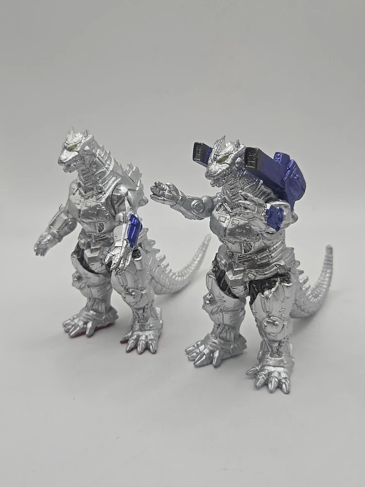 ***LOT OF 2*** This 4" Mecha Godzilla figurine is a must-have for any anime and manga fan. Made by Bandai in 2002, this Japan import Sofubi Soft Vinyl Kaiju Figure is a perfect addition to your collection. The figure is made of PVC material and features intricate details that accurately depict the character. The Mecha Godzilla figurine is part of the Godzilla franchise and is based on the character's appearance in the TV show Gojira. With its unique design and high-quality construction, this figurine is sure to impress collectors and fans alike. Don't miss your chance to own this rare and highly sought-after piece. Powered by ExportYourStore.com