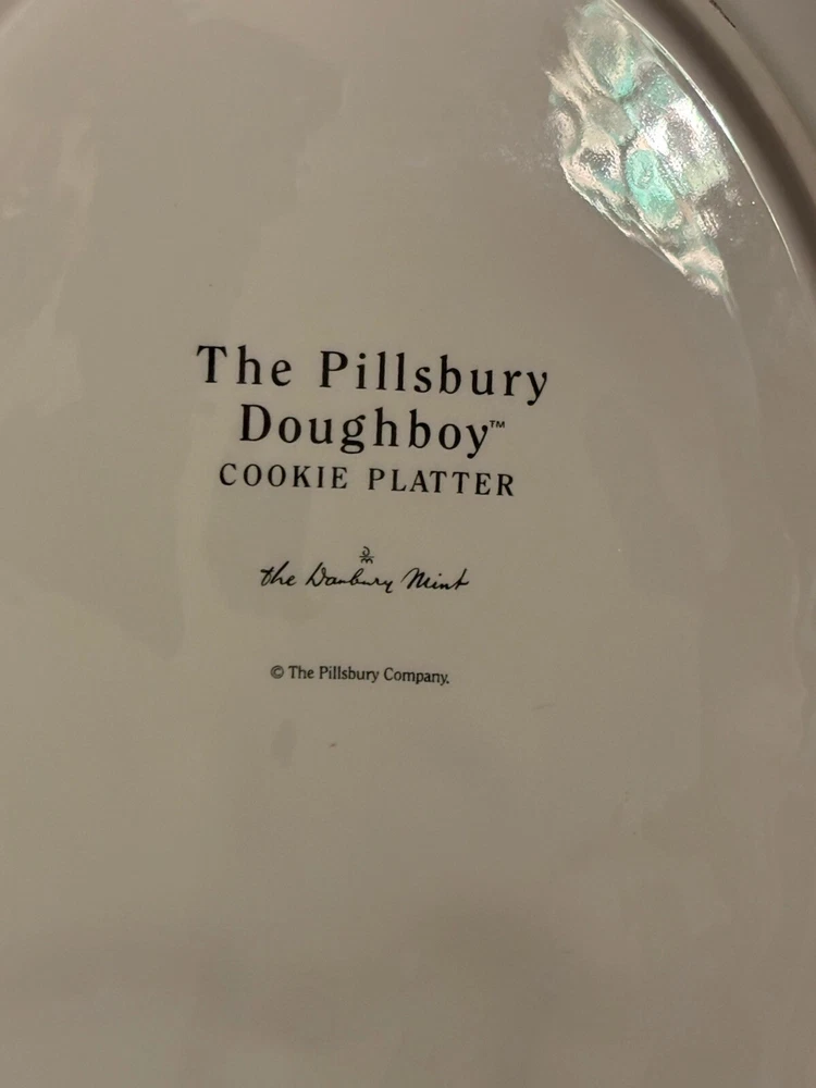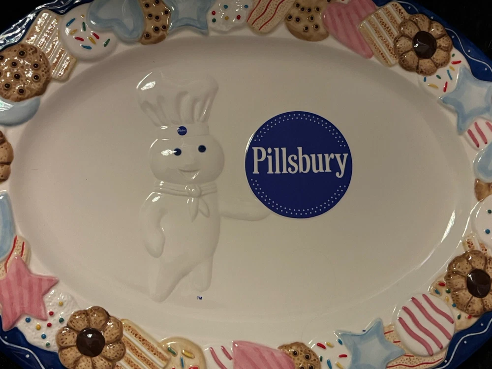 Approximately 16 inches in length this iconic Danbury Mint Pillsbury Doughboy cookie platter is a must for any collector. With no chips or cracks it can be used as a decorative serving tray or for simply decorative purposes.
