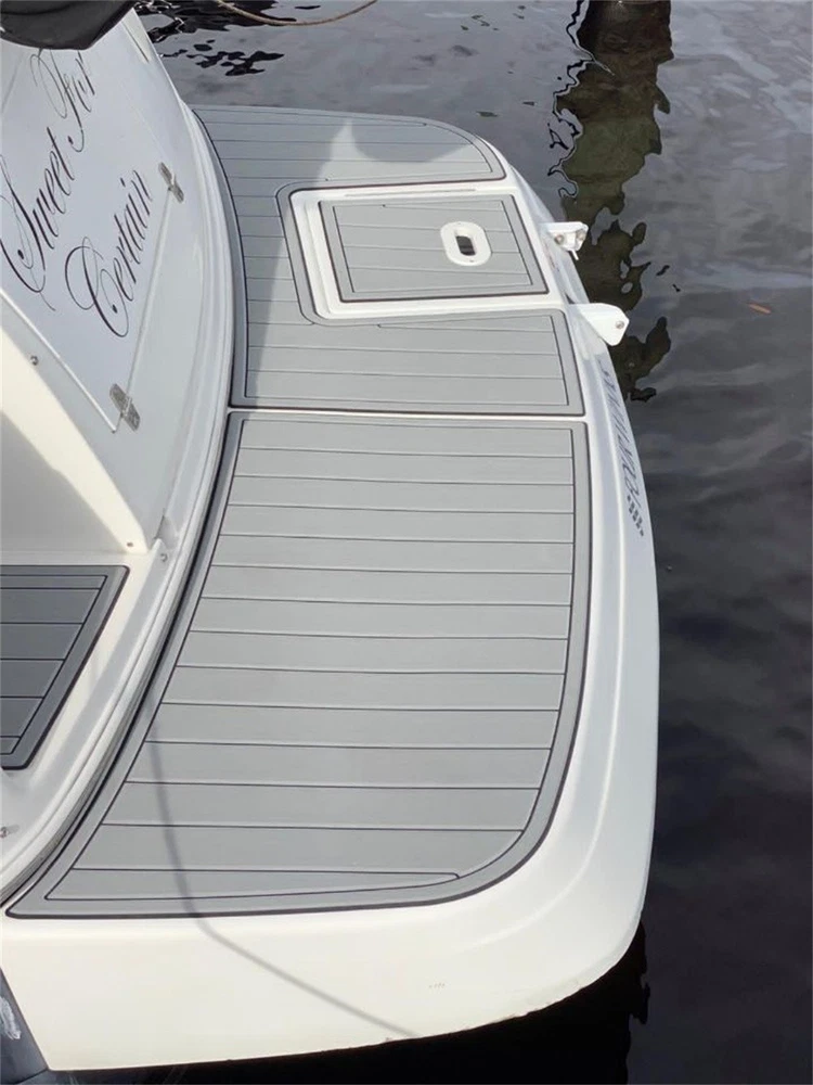 We could not add the 12 floor color options that you can choose to use to each listing because of quantity limit, when you order it, you can just leave an order note for the floor color that you want to use or you can send us a message, we will always check and confirm the floor color with you before we make the floor for you.You can just order it. 2002 Four Winns 214 Funship Swim Platform Cockpit Pad Boat EVA Foam Faux Teak Deck Floor Mat Please be aware that we can only make this boat floor by the first listing drawing. Before you order it, please double check the listing drawing outline shapes with your boat to make sure they can fit your boat well. As long as the floor pad outline shape can match your boat deck layout, it should fit well.We will not be hold responsible if the listing drawing floors do not fit your boat well because you do not double check our listing drawing. We can only make sure that the floors will be cut exactly by the listing drawing. If you are not sure if the drawing can fit well with your boat, please send us some photos of your boat deck layout or a short video to show your boat deck layout from stern to bow so we can help you to confirm the fitting. The floor comes with marine backing adhesive.It is peel and stick installation.You just need to peel off the white protection paper and put it down. You do not need to buy glue to install it. We offer 1 year warranty for all our boat floors. The EVA floor is 1/4″(6mm) thick two-color pad. You can choose your colors, texture and faux teak option. Additional custom text logos can also be incorporated on EVA floor. All routed logos and beveled edges will show the bottom color selected. All EVA floors come with marine backing glue. All EVA floors listed on our online store are “made to order” and not stocked so please allow up to 2-3 weeks for delivery. EVA floor fabrication time is about 4-5 days, then it will take about 7-10 days’time to ship and deliver to your order shipping address.After you order it, please double check your order shipping address to make sure all the shipping address, postal code, city name and contact phone number are all correct. We will ship all orders by express shipping such as FedEx, UPS, DHL or EMS express. We will choose the shipping courier as we see fit. EVA hardness: 60-65 ASKER C UV tested: 3000 Hours Thickness: 6mm, 1/4 Inch 1 year quality warranty Color choices: #1 Brown+Black #2 Dark Brown+Black #3 Brown+White #4 Grey+Black #5 Dark Grey+Black #6 Grey+White #7 Grey+Blue #8 Grey+Purple #9 Grey+Red #10Black+White #11 Black+Red #12 Black+Blue When you order it, please tell us the color you want for top layer and bottom layer. Additional custom text logo fee: 50 USD/ea. Before you order it, please verify floor drawing and confirm that it matches your boat and understand that this cannot be returned without a restocking fee of 30%. We can also make the custom EVA teak decking by the template drawing or full size template that you can supply to us. The listing price does not include any destination duties/taxes/custom fees/etc. that will be due when the product arrives at destination countries/regions.It is the customer’s responsibility to pay for all custom duty/taxes/custom fees if any.