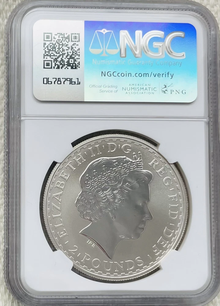 Certification Number:2923111-002Total Precious Metal Content:1 ozPrecious Metal Content per Unit:1 ozComposition:SilverBrand/Mint:British Royal MintStrike Type:UNCIRCULATEDGrade:MS 68Certification:NGCCoin:UK BritanniaYear:2002Fineness:0.958Country/Region of Manufacture:United KingdomModified Item:No