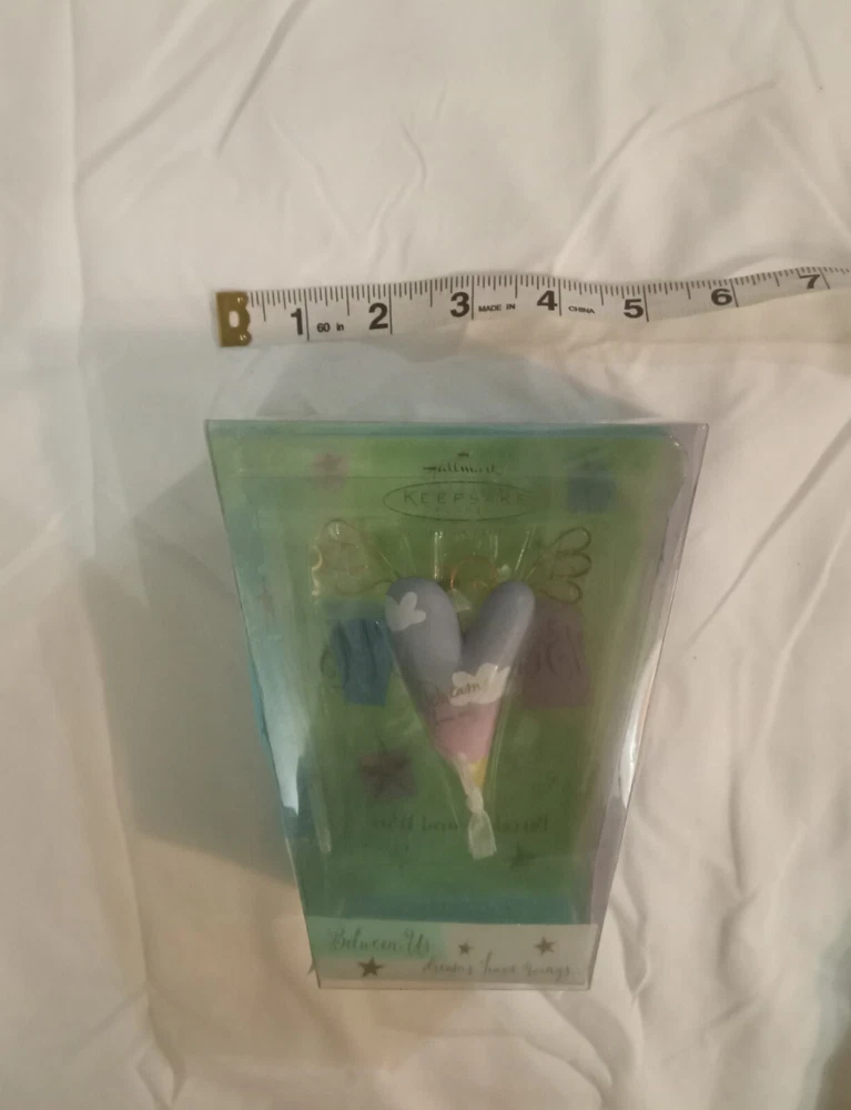This delicate porcelain ornament is absolutely stunning! The heart-shaped design with its dreamy, winged theme adds a touch of magic to any Christmas tree. The craftsmanship is top-notch, and the colors are vibrant yet elegant. Perfect for collectors or anyone who loves unique holiday decor—it’s a timeless piece that brings warmth and charm to every season. A must-have for Hallmark fans!