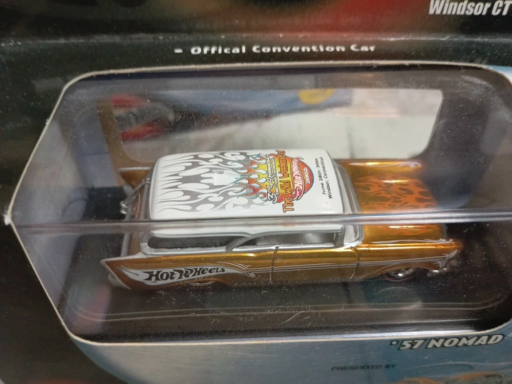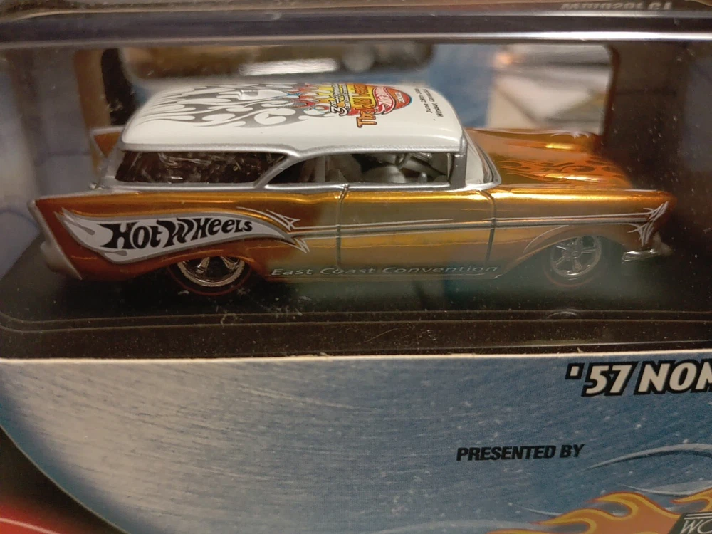 This vintage Hot Wheels car from 2002 is a must-have for any collector. It features a stunning gold color and is a limited edition model from the HW 3rd Annual Convention/Wild Weekend series. The car comes in an unopened box and includes a protective case. This 1:64 scale model is a replica of the Chevy Nomad and is suitable for children aged 8 and above, as well as adults aged 17 and up. The car is gender-neutral and was manufactured in China. It is a great addition to any diecast and toy vehicle collection.