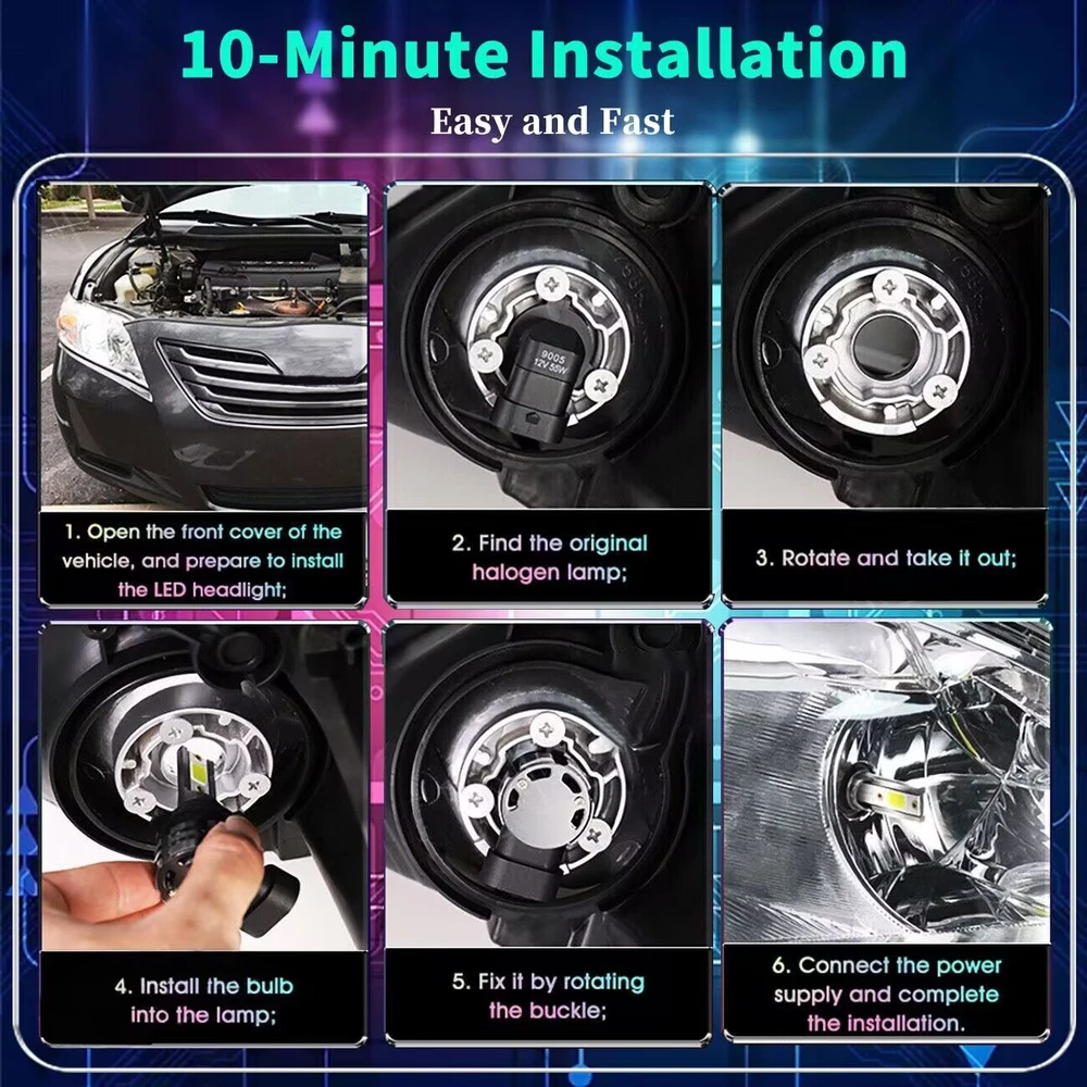 These LED headlight bulbs are a game-changer for my Camry! The bright 6000K white light improves visibility at night, and the installation was a breeze—just plug and play. The cooling system works great, keeping the bulbs from overheating even on long drives. Super durable and way better than stock halogens. Highly recommend for anyone looking to upgrade their headlights!