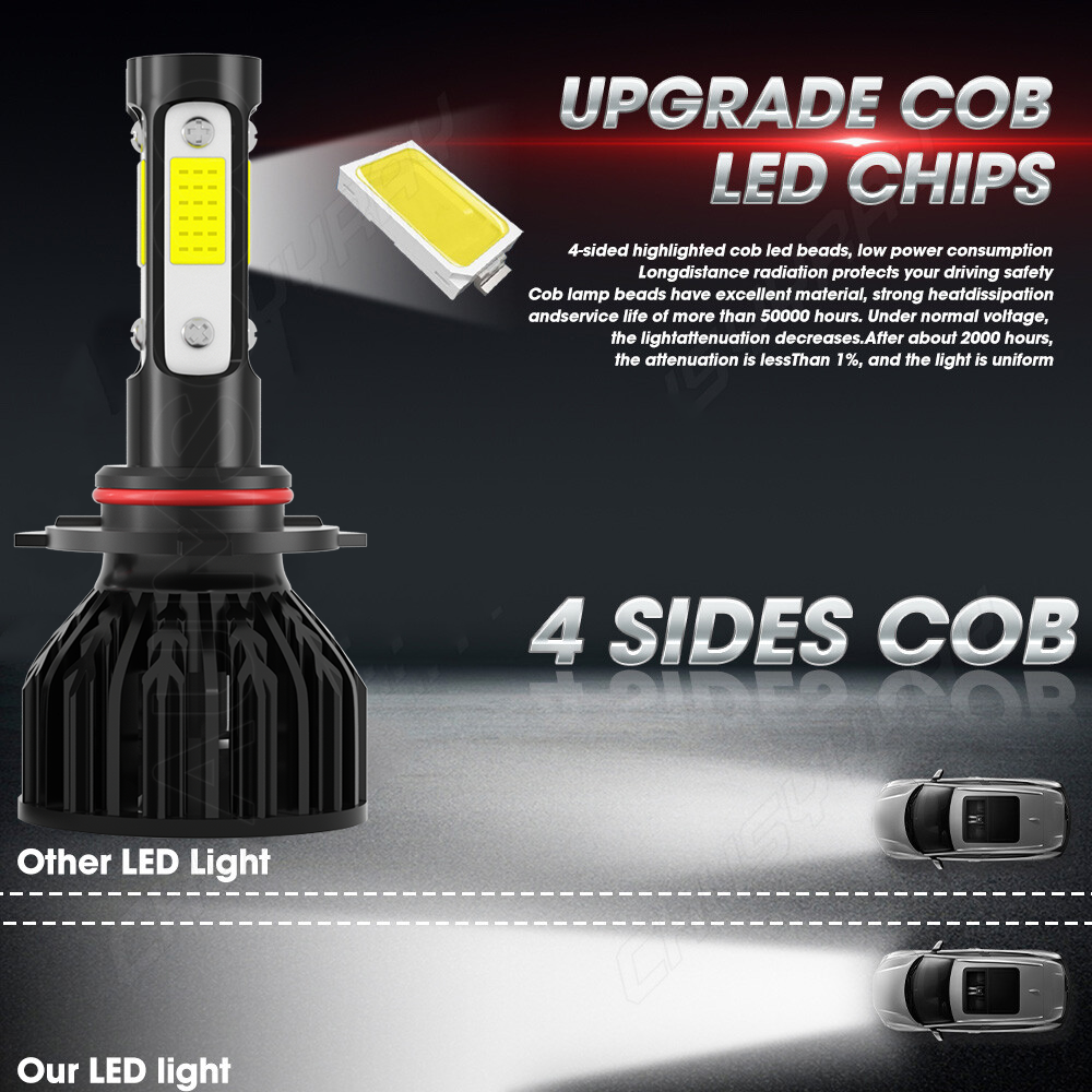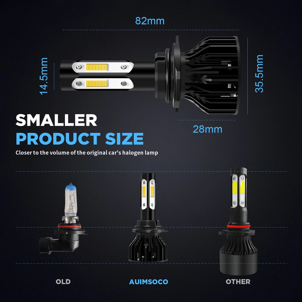 Product Specification: Type 4-Sides LED Light Bulb To Fit Headlight Bulb Size 9005(HB3) 9006(HB4) Lighting Technology CE, RoHS Light Color XENON White Wattage 200W/Pair (100W/bulb) Lifetime Up to 50,000hrs Waterproof Rate IP67 Fitment Type Direct Replacement Product Features: [Life up to 50,000 + hours]: The unique design of the AUIMSOCO 9005 9006 bulb features a hollow radiator and a 15,000 RPM turbo-cooled fan that effectively dissipates the heat of the AUIMSCO LED bead, making the 9005 9006LED bulb last for 50,000 hours. [600% brightness]: Compared to conventional halogen bulbs, AUIMSOCO LED bulbs are 600% brighter, and each LED bulb has 100W of power and 10,000 lumens. AUIMSOCO 9005 9006 LED bulbs feature an integrated hollow radiator and fan that work together to maintain optimal performance. [1:1 Perfect beam pattern design]: LED bulbs precisely mimic the position of the original halogen filament to ensure a perfect beam pattern. This enhances visibility in front of the vehicle, giving you a wider driving field of view and reducing glare when visibility is low. [Easy installation in just 5 minutes]: The AUIMCOSO 9005 9006 LED bulb fits perfectly into your car lampshade without any modification. Simply plug a connection point into the vehicle's lampshade. The plug-and-play design makes switching simple. Package Included: 🌟 2Pcs 9005(HB3) LED High Light Bulbs 🌟 2Pcs 9006(HB4) LED High Light Bulbs Location Descriptions: To improve your buying experience and ensure fast delivery, your order will be shipped from the warehouse closest to your address in Kentucky or California. If you have any questions, please contact us. Thank you for your support! On Nov 27, 2024 at 18:56:08 PST, seller added the following information: