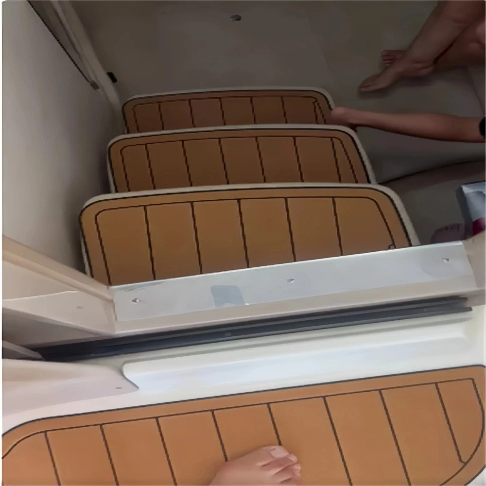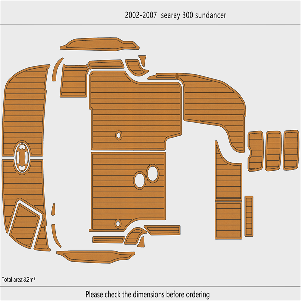 We could not add the 16 floor color options that you can choose to use to each listing because of quantity limit, when you order it, you can just leave an order note for the floor color that you want to use or you can send us a message, we will always check and confirm the floor color with you before we make the floor for you.You can just order it. Please be aware that we can only make this boat floor by the first listing drawing. Before you order it, please double check the listing drawing outline shapes with your boat to make sure they can fit your boat well. As long as the floor pad outline shape can match your boat deck layout, it should fit well.We will not be hold responsible if the listing drawing floors do not fit your boat well because you do not double check our listing drawing. We can only make sure that the floors will be cut exactly by the listing drawing. If you are not sure if the drawing can fit well with your boat, please send us some photos of your boat deck layout or a short video to show your boat deck layout from stern to bow so we can help you to confirm the fitting. The floor comes with marine backing adhesive.It is peel and stick installation.You just need to peel off the white protection paper and put it down. You do not need to buy glue to install it. We offer 1 year warranty for all our boat floors. The EVA floor is 1/4″(6mm) thick two-color pad. You can choose your colors, texture and faux teak option. Additional custom text logos can also be incorporated on EVA floor. All routed logos and beveled edges will show the bottom color selected. All EVA floors come with marine backing glue. All EVA floors listed on our online store are “made to order” and not stocked so please allow up to 2-3 weeks for delivery. EVA floor fabrication time is about 4-5 days, then it will take about 7-10 days’ time to ship and deliver to your order shipping address.After you order it, please double check your order shipping address to make sure all the shipping address, postal code, city name and contact phone number are all correct. We will ship all orders by express shipping such as DHL, FedEX, USP or EMS express. We will choose the shipping courier as we see fit. Color choices: #1 Black over Brown #2 Black over Dark Grey #3 Black over Green #4 Black over Red #5 Black over White #6 Brown over Black #7 Brown over White #8 Coffee over Black #9 Dark Grey over Black #10 Dark Grey over Grey #11 Grey over Black #12 Grey over blue #13 Grey over Purple #14 Grey over Red #15 Grey over White #16 Black over Blue When you order it, please tell us the color you want for top layer and bottom layer. Additional custom text logo fee:50 USD/ea. Before you order it, please verify floor drawing and confirm that it matches your boat and understand that this cannot be returned without a restocking fee of 30%. We can also make the custom EVA teak decking by the template drawing or full size template that you can supply to us. The listing price does not include any destination duties/taxes/custom fees/etc. that will be due when the product arrives at destination countries/regions. It is the customer’s responsibility to pay for all custom duty/taxes/custom fees if any. 1.EVA material is a high-density sponge, does not absorb moisture 2.No blackening/darkening in humid environment 3.Hardness: Around 55-50 degrees 4.Soft & Comfortable 5.Easy maintenance(Use of common cleaning agents, rinse with brush and water 6.High and low temperature resistance 7.Sound insulation and anti-vibration 8.Easy replacement,Easy installation,No additional auxiliary materials required 9.UV resistant without color fading 10.Support for customized services(Colors and patterns) Precautions before payment: 1.Please check if the boat model match your Yacht model。 2.Some ship models have different configurations with different options, please pay attention to choose the most suitable one 3.If not sure whether your ship matches the drawings, please send us photos of swim platform and cockpit, we could help to determine if it is appropriate 4..If need to verify the size, please feel free to contact us Order colors: 1.If request color not included in color cards, need to waiting the other 10-15 days. Parcels can be sent out within 20 days(Start from the moment of payment done), extend the cycle when it comes to holidays 2.The picture colors for reference only, based on actual color(Photos taken by cell phones easy to present the chromatic aberration) For design: 1.We could design drawings according to the customer’s requirements(Free of Charge) 2.We could provide design drawings for your choices 3.Support LOGO customization(50USD/ea), document is needed, format file: DXF/AI/PDF/JPJ/PNG etc. For Installation: 1.Need to use acetone or alcohol to clean the floor before installation(To remove surface wax of new ships), make sure it is dry before starting the installation. 2.Lay all EVA floors flat before installation. When confirming the location, tear off the backing adhesive from one corner and start the installation 3.Fix it when pasting, cannot move EVA floors 4.Rolling with round rollers during installation process(Need to finger press LOGO position in advance to avoid air in it). If air generated, remove it by use of a small needle to pierce the air bubble 5.No soaking within 48 hours after installation Making Templates: If no matching ship model in our sale list, pls provide template we could produce it based on your template’s requirement Reference image to create template Make a note in the package to remark contact details, name, the brand of small ship/model/year of production, we will contact you immediately We will send design drawings to you for confirmation within 5 days after template received Complete production and send package within 3-5 days after confirmation of drawings(after payment done) Package: Soft material. Rolled and packed for shipment. Outer box package Shipment Express courier: DHL FEDEX TNT UPS 