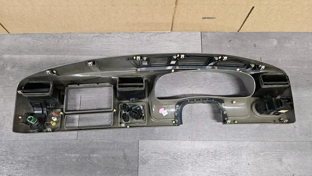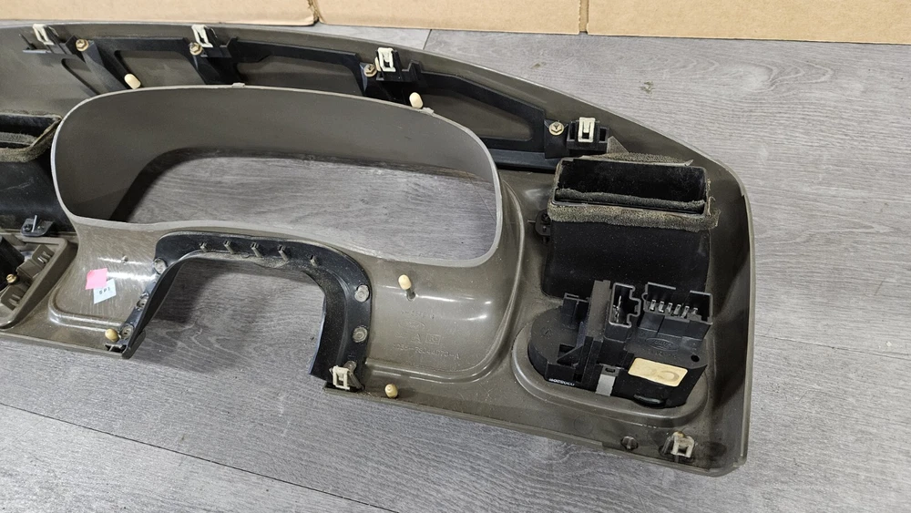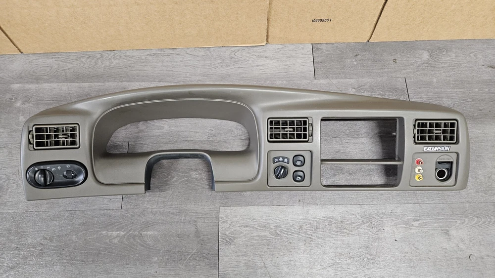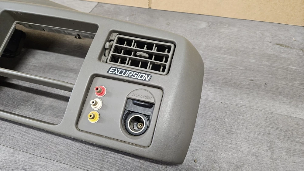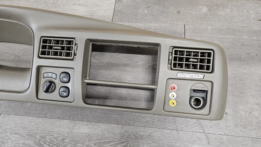 2003-2005 Ford Excursion Interior Dash Trim Bezel OEM Interior Color: Medium Parchment Dark Tan Good used condition. OEM dash bezel out of a wrecked 2003 Excursion. No cracks or breaks, all mounting tabs are intact. Shows signs of wear as it's a used 22 year old plastic bezel. All switches included but untested. Vents have a fair amount of dirt/dust build up and should be cleaned out before install. There are 3 RCA cable ends mounted to the right side of the bezel as shown in photos. Please view all photos before purchase. Terms of Sale Items are inspected for any damage and tested to the best of our ability. Keep in mind many parts are removed from salvage vehicles and not able to be tested. Returns accepted for items damaged in shipping and electrical items that don't work as they should, but not for buyers remorse. Returned items are inspected for any tampering or missing pieces and buyers will be reported accordingly. IF YOU HAVE ANY PROBLEMS WITH YOUR ORDER PLEASE REACH OUT TO US BEFORE LEAVING A NEGATIVE FEEDBACK Shipping Information Most items will ship out same day or next business day shipping via FedEx Ground/Home Delivery or USPS Priority Mail. If you have any special shipping requests or inquiries please reach out before placing your order.