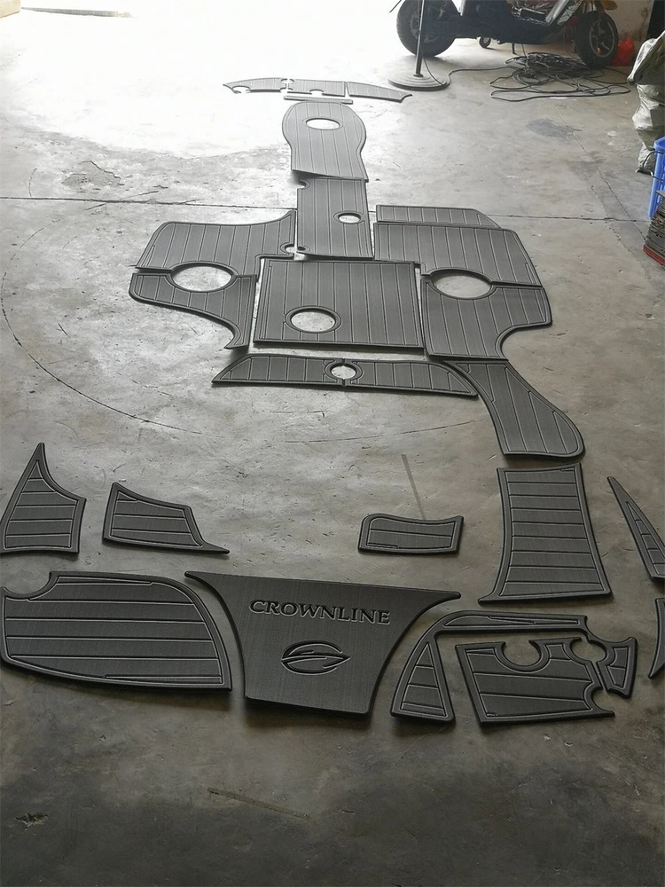 We could not add the 12 floor color options that you can choose to use to each listing because of quantity limit, when you order it, you can just leave an order note for the floor color that you want to use or you can send us a message, we will always check and confirm the floor color with you before we make the floor for you.You can just order it. 2003 Crownline 230 EX Swim Platform Cockpit Pad Boat EVA Foam Faux Teak Deck Floor Mat SeaDek MarineMat Gatorstep Style Self Adhesive Please be aware that we can only make this boat floor by the first listing drawing. Before you order it, please double check the listing drawing outline shapes with your boat to make sure they can fit your boat well. As long as the floor pad outline shape can match your boat deck layout, it should fit well.We will not be hold responsible if the listing drawing floors do not fit your boat well because you do not double check our listing drawing. We can only make sure that the floors will be cut exactly by the listing drawing. If you are not sure if the drawing can fit well with your boat, please send us some photos of your boat deck layout or a short video to show your boat deck layout from stern to bow so we can help you to confirm the fitting. The floor comes with marine backing adhesive.It is peel and stick installation.You just need to peel off the white protection paper and put it down. You do not need to buy glue to install it. We offer 1 year warranty for all our boat floors. The EVA floor is 1/4″(6mm) thick two-color pad. You can choose your colors, texture and faux teak option. Additional custom text logos can also be incorporated on EVA floor. All routed logos and beveled edges will show the bottom color selected. All EVA floors come with marine backing glue. All EVA floors listed on our online store are “made to order” and not stocked so please allow up to 2-3 weeks for delivery. EVA floor fabrication time is about 4-5 days, then it will take about 7-10 days’time to ship and deliver to your order shipping address.After you order it, please double check your order shipping address to make sure all the shipping address, postal code, city name and contact phone number are all correct. We will ship all orders by express shipping such as FedEx, UPS, DHL or EMS express. We will choose the shipping courier as we see fit. EVA hardness: 60-65 ASKER C UV tested: 3000 Hours Thickness: 6mm, 1/4 Inch 1 year quality warranty Color choices: #1 Brown+Black #2 Dark Brown+Black #3 Brown+White #4 Grey+Black #5 Dark Grey+Black #6 Grey+White #7 Grey+Blue #8 Grey+Purple #9 Grey+Red #10Black+White #11 Black+Red #12 Black+Blue When you order it, please tell us the color you want for top layer and bottom layer. Additional custom text logo fee: 50 USD/ea. Before you order it, please verify floor drawing and confirm that it matches your boat and understand that this cannot be returned without a restocking fee of 30%. We can also make the custom EVA teak decking by the template drawing or full size template that you can supply to us. The listing price does not include any destination duties/taxes/custom fees/etc. that will be due when the product arrives at destination countries/regions.It is the customer’s responsibility to pay for all custom duty/taxes/custom fees if any.
