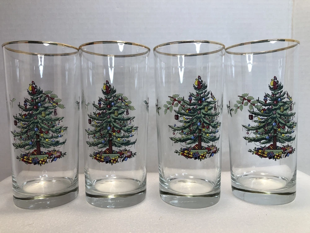 2003 Set of 8 Spode Christmas Tree Santa 15 Ounces Highballs with Gold Rims Two boxes of 4. Total of 8 Glasses. Boxes show slight wear and both have old price tag scares on bottom. Will be shipped double boxed. No Returns. Comes from a smoke free home. What you see pictured is the item you’ll receive. Shipping is calculated based on your location by The USPS or UPS. Check out my other auctions and come back often! I am moving out of state and selling my entire collection. Thanks and Cheers.