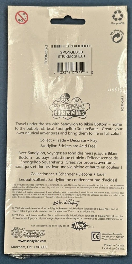 Type:StickersBrand:Sandylion Sticker DesignColor:Multi-ColorCountry/Region of Manufacture:CanadaHandmade:NoTheme:Cartoon CharactersDimensions::Approx. 8.5in X 4in