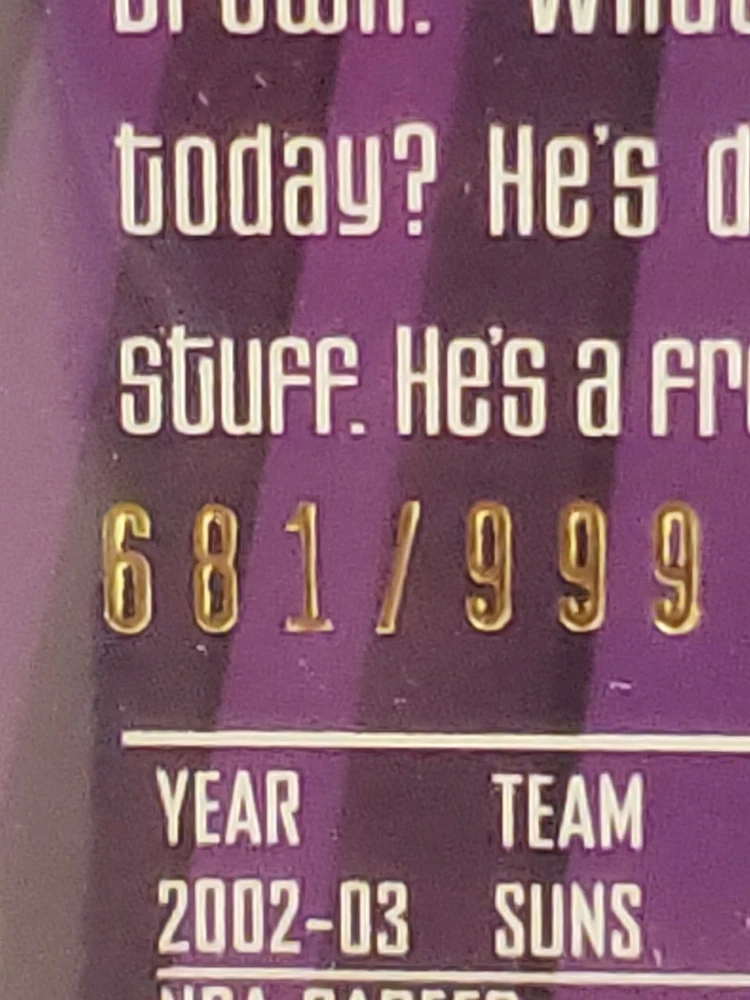 2003-04 Topps Finest Game-Worn Jersey 681/999 Amare Stoudemire #115 Phoenix Suns Condition is "Very Good". Shipped with USPS Gound Advantage Due to my schedule The Post Office is close before I head to work and close when I get off work Sunday - Friday I'm Is only able to go to the Post Office Saturday but I sometimes get off early so if payment is not received by night before they won't be shipped until the following off day so for any delay of shipping i will try my best to get it off on time I'm not a professional grader...... The majority of my cards are packed fresh open by myself however I bought Many cases over the years to build my sets I bought cards from card shops card shows Instagram and and even eBay to add to my collection and now my collection to me is not what it used to be so I'm slowly getting rid of my collection looking for cards let me know I have thousands I did not check every card for flaws my feedback speaks for itself no my other pages I used the term VERY GOOD good to cover myself LOOK AT THE THE PICTURES . And for everyone who expects every card to be a mint 9 or 10 very good could have flaws A ding here A rough corner there ask for for pics W hat U See Is Wat U Get . Additional cards will be $ 1 Wait for invoice if not I will not get give discount If you are looking for Other cards hit me up I have singles, Rookies , Jersey's , Auto's , Numbered, Some Sets i have a lot thank you any questions just ask ask good luck