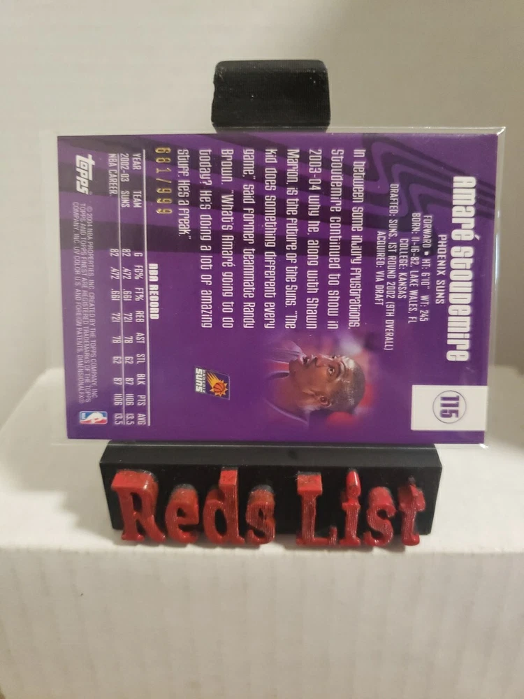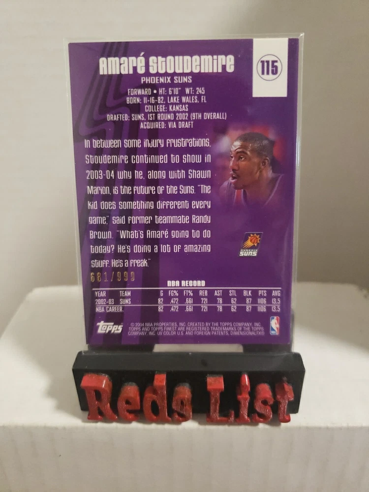 2003-04 Topps Finest Game-Worn Jersey 681/999 Amare Stoudemire #115 Phoenix Suns