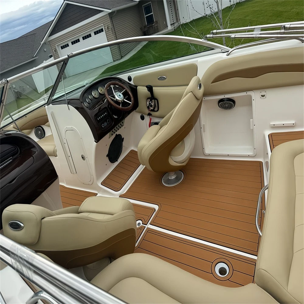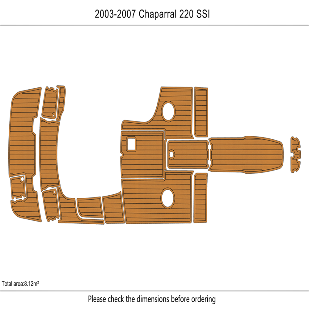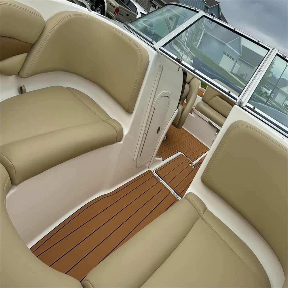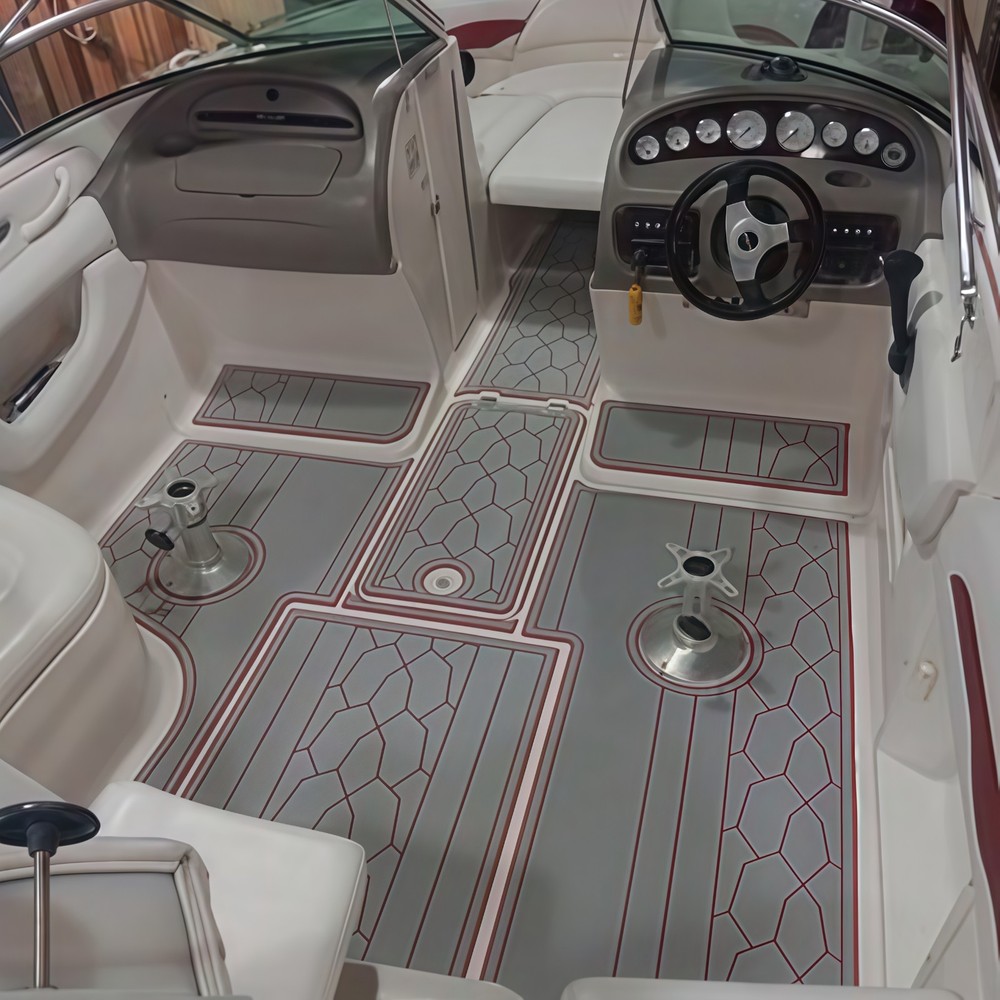 We could not add the 16 floor color options that you can choose to use to each listing because of quantity limit, when you order it, you can just leave an order note for the floor color that you want to use or you can send us a message, we will always check and confirm the floor color with you before we make the floor for you.You can just order it. Please be aware that we can only make this boat floor by the first listing drawing. Before you order it, please double check the listing drawing outline shapes with your boat to make sure they can fit your boat well. As long as the floor pad outline shape can match your boat deck layout, it should fit well.We will not be hold responsible if the listing drawing floors do not fit your boat well because you do not double check our listing drawing. We can only make sure that the floors will be cut exactly by the listing drawing. If you are not sure if the drawing can fit well with your boat, please send us some photos of your boat deck layout or a short video to show your boat deck layout from stern to bow so we can help you to confirm the fitting. The floor comes with marine backing adhesive.It is peel and stick installation.You just need to peel off the white protection paper and put it down. You do not need to buy glue to install it. We offer 1 year warranty for all our boat floors. The EVA floor is 1/4″(6mm) thick two-color pad. You can choose your colors, texture and faux teak option. Additional custom text logos can also be incorporated on EVA floor. All routed logos and beveled edges will show the bottom color selected. All EVA floors come with marine backing glue. All EVA floors listed on our online store are “made to order” and not stocked so please allow up to 2-3 weeks for delivery. EVA floor fabrication time is about 4-5 days, then it will take about 7-10 days’ time to ship and deliver to your order shipping address.After you order it, please double check your order shipping address to make sure all the shipping address, postal code, city name and contact phone number are all correct. We will ship all orders by express shipping such as DHL, FedEX, USP or EMS express. We will choose the shipping courier as we see fit. Color choices: #1 Black over Brown #2 Black over Dark Grey #3 Black over Green #4 Black over Red #5 Black over White #6 Brown over Black #7 Brown over White #8 Coffee over Black #9 Dark Grey over Black #10 Dark Grey over Grey #11 Grey over Black #12 Grey over blue #13 Grey over Purple #14 Grey over Red #15 Grey over White #16 Black over Blue When you order it, please tell us the color you want for top layer and bottom layer. Additional custom text logo fee:50 USD/ea. Before you order it, please verify floor drawing and confirm that it matches your boat and understand that this cannot be returned without a restocking fee of 30%. We can also make the custom EVA teak decking by the template drawing or full size template that you can supply to us. The listing price does not include any destination duties/taxes/custom fees/etc. that will be due when the product arrives at destination countries/regions. It is the customer’s responsibility to pay for all custom duty/taxes/custom fees if any. 1.EVA material is a high-density sponge, does not absorb moisture 2.No blackening/darkening in humid environment 3.Hardness: Around 55-50 degrees 4.Soft & Comfortable 5.Easy maintenance(Use of common cleaning agents, rinse with brush and water 6.High and low temperature resistance 7.Sound insulation and anti-vibration 8.Easy replacement,Easy installation,No additional auxiliary materials required 9.UV resistant without color fading 10.Support for customized services(Colors and patterns) Precautions before payment: 1.Please check if the boat model match your Yacht model。 2.Some ship models have different configurations with different options, please pay attention to choose the most suitable one 3.If not sure whether your ship matches the drawings, please send us photos of swim platform and cockpit, we could help to determine if it is appropriate 4..If need to verify the size, please feel free to contact us Order colors: 1.If request color not included in color cards, need to waiting the other 10-15 days. Parcels can be sent out within 20 days(Start from the moment of payment done), extend the cycle when it comes to holidays 2.The picture colors for reference only, based on actual color(Photos taken by cell phones easy to present the chromatic aberration) For design: 1.We could design drawings according to the customer’s requirements(Free of Charge) 2.We could provide design drawings for your choices 3.Support LOGO customization(50USD/ea), document is needed, format file: DXF/AI/PDF/JPJ/PNG etc. For Installation: 1.Need to use acetone or alcohol to clean the floor before installation(To remove surface wax of new ships), make sure it is dry before starting the installation. 2.Lay all EVA floors flat before installation. When confirming the location, tear off the backing adhesive from one corner and start the installation 3.Fix it when pasting, cannot move EVA floors 4.Rolling with round rollers during installation process(Need to finger press LOGO position in advance to avoid air in it). If air generated, remove it by use of a small needle to pierce the air bubble 5.No soaking within 48 hours after installation Making Templates: If no matching ship model in our sale list, pls provide template we could produce it based on your template’s requirement Reference image to create template Make a note in the package to remark contact details, name, the brand of small ship/model/year of production, we will contact you immediately We will send design drawings to you for confirmation within 5 days after template received Complete production and send package within 3-5 days after confirmation of drawings(after payment done) Package: Soft material. Rolled and packed for shipment. Outer box package Shipment Express courier: DHL FEDEX TNT UPS 