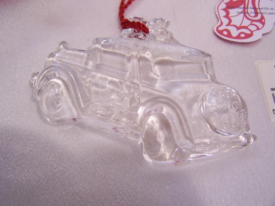 2004 Our First Christmas Ornament Marquis by Waterford Lead Crystal NIB 2004 "Our First Christmas" Crystal Marquis by Waterford Lead Crystal #128425 Beautiful crystal car ornament dated 2004. The date is on the spare tire on the trunk. This is a b eautiful keepsake to commemorate that very special first Christmas together! Measures 3 1/2" wide Made in Germany Includes red tassel hanger Perfect for gift giving New in mint condition with original box and insert Please email me with any questions. I will respond back quickly. I describe item conditions to the best of my ability and will always point out any flaws or defects that I am aware of. I am an EBay Seller with 100% Positive Feedback! Thank you. Bid with Confidence! See my other listings for more great items! Because I have had a slew of non paying and very slow paying bidders lately I will require payment within 2 days of the end of auction. However, if you need a different arrangement I will be more than happy to work with you, just let me know. INTERNATIONAL BUYERS ARE RESPONSIBLE FOR ALL CUSTOMS CHARGES, PORT CHARGES OR ANY TAXES DUE UPON RECEIPT OF THEIR PACKAGE. All my shipping charges include delivery confirmation. International shipping will be at actual cost. Thank you for bidding on my auctions. Your business is very much appreciated! txzj pxzj3978 txzj44 txzj69