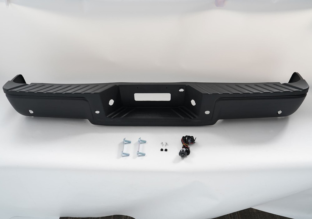 Fitment: Fit 2004 Ford F-150 Fit 2005 Ford F-150 Fit 2004 Ford F-250 Lightduty Only Fit 2005 Ford F-250 Lightduty Only Only Fit StyleSide(Straight Bed) Not Fit FlareSide(Super Crew) For Models Up To 08/08/2005 Production Date Only(F-150 2004-2006) Item Specifications: Color: Black Material: Carbon Steel Type: Bumper Assembly Placement on Vehicle: Rear Fitment Type: Direct Replacement Notice: For Models with Park Assist Holes Partslink Number: FO1103120, FO1103128 Package Content 1x Pickup Rear Bumper 1 x Set of License Plate Lamp with Harness Some Bolts and Screws On Dec 27, 2024 at 10:15:51 PST, seller added the following information: