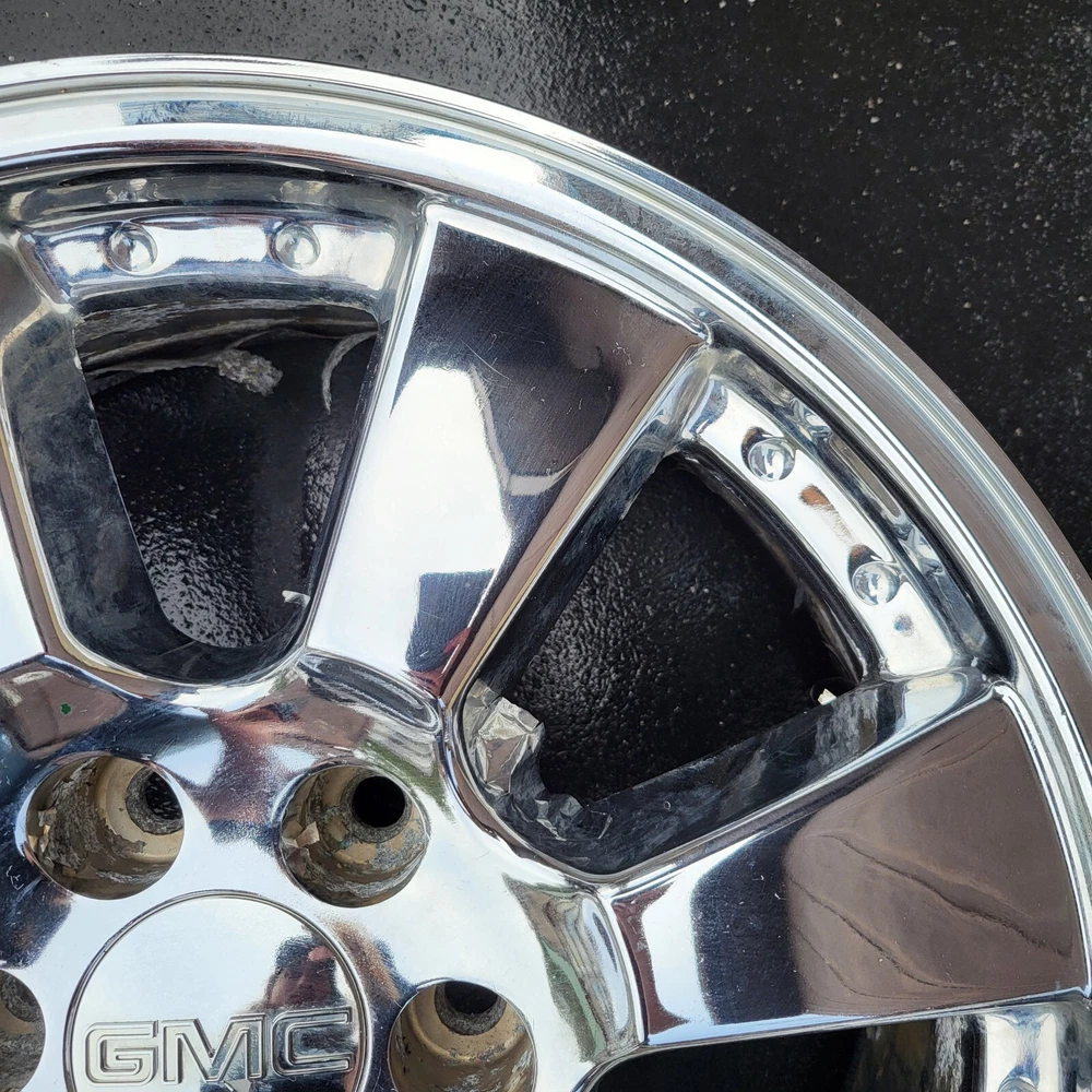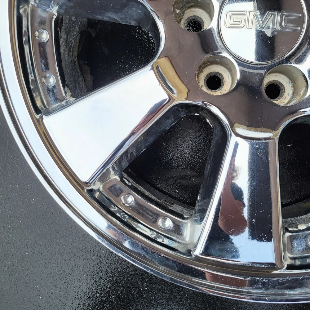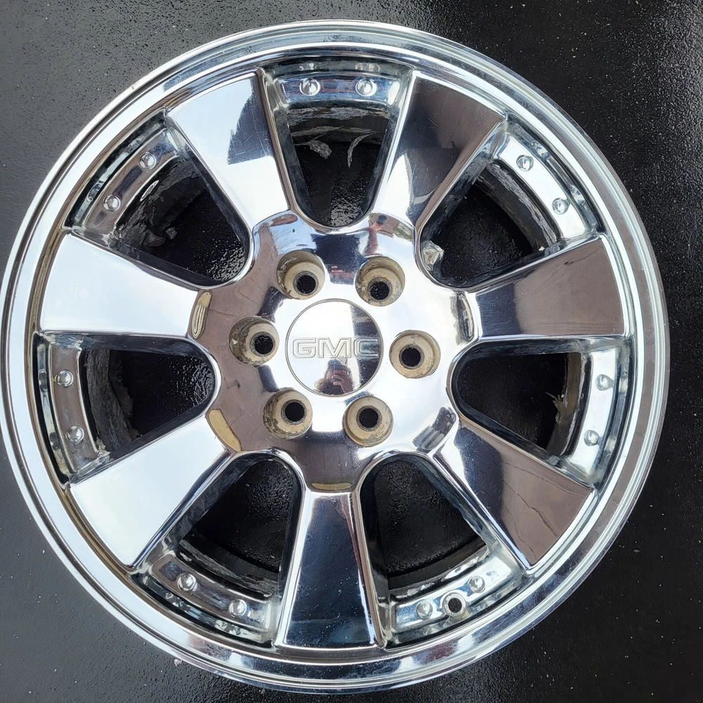 2005 - 2008 GMC SIERRA CADILLAC ESCALADE 20 INCH CHROME PLATED ALUMINUM ALLOY WHEEL. 20X 8.5, 6X139.7 BOLT PATTERN PART # 9595757 THIS IS A USED CHEVY WHEEL IN GOOD USEABLE CONDITION. WITH CHROME PEELING & OXIDATION. PLEASE SEE PICTURES. THE WHEEL PICTURED IS THE WHEEL YOU WILL RECEIVE. 6 MONTH WARRANTY, 30 DAY RETURN POLICY. FREE SHIPPING WITH UPS GROUND. SAME DAY HANDLING.