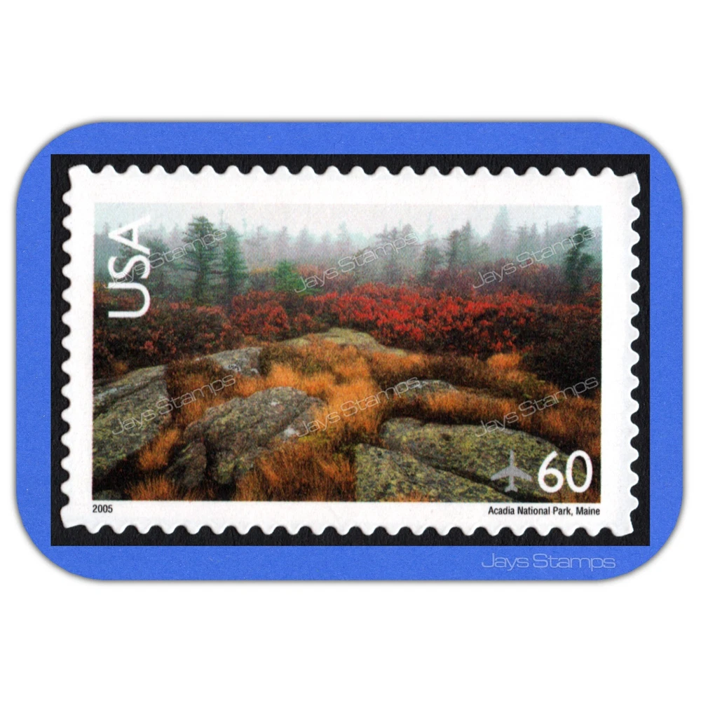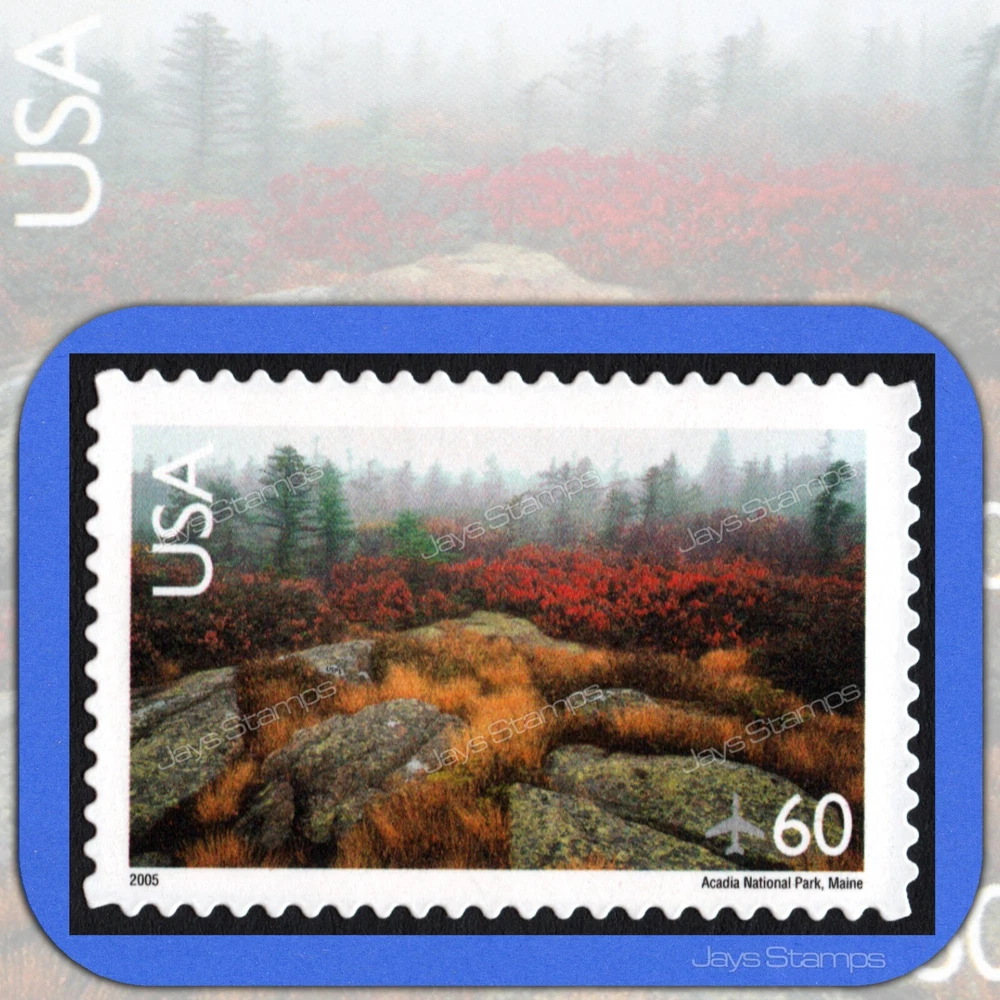 The sixth Scenic American Landscapes Series stamp features Acadia National Park, which includes 45,000 acres of mountains, lakes, forests, and rocky shoreline in Maine. Acadia was the first national park created east of the Mississippi River. This stamp was first issued in 2001, and then re-issued in 2003 (C138a) and again in 2005 (C138b). The 2001 issue had perforations of 11.25 x 11.5, the 2003 (C138a) and 2005 (C138b) issues had perforations of 11.5 x 11.9, For the Discriminating Collector, This listing is for one (1) Single, Air Mail, U.S. Scott #C138b Acadia National Park Scenic American Landscapes Series 60 cent self adhesive stamp that was re-issued in 2005 . Our scan was taken from an Actual stamp from the same pane in our current inventory and represents the one (1) single, individual stamp that you will receive. This stamp is Clean, has Never been bent, creased, folded or hinged and is in Absolute mint, unused, valid for postage condition. Any and All backgrounds (faded, blue or black) shown in our scans are for presentation purposes and are Not included with the stamp(s) in this listing. Check our Feedback and Bid or Buy with confidence. Feel Free to Email us with ANY questions you may have. We are a Proud member of the American Philatelic Society #213160. Thank You for taking the time to look at the items that we have to offer for your consideration. We can accept PayPal, Google Pay, Visa, MasterCard, American Express and Discover cards. Payments or Notice of payment are due within 10 days of auction or sale end. If you need longer, just let us know. If you are successful at winning more than 1 of our auctions, Please do not make a payment for each item individually. Add as many items as you'd like to your Shopping Cart and use one checkout to take advantage of our shipping discounts. ALL of your items are handled with TLC, Meticulously Packaged, and Personally Delivered to the Post Office. We Care and We want your stamps to arrive just the way they look Today! We ALWAYS try to use collectible stamps to ship our stamp orders. Larger Domestic and International orders may possibly be shipped with an eBay generated shipping label. U.S. Shipping Discounts are applied to Shopping Cart items that are purchased together on one (1) invoice starting at the highest priced shipping method stated for the combined items for a Full 10 days . Additional single stamps S hip for FREE ... provided you combine them in your cart together and make ONE (1) payment. We ship packages Worldwide using USPS First Class Mail. A Priority Mail or Insurance upgrade is available at cost, at your expense upon request . International Buyers - Import duties, taxes, charges and/or surcharges are not included in either the item price or the shipping charge that are stated in each and every auction or store item listings. Any and All of these charges are the buyers responsibility. International Shipping Discounts are applied to Shopping Cart items that are purchased together on one (1) invoice starting at the highest priced shipping method stated for the combined items for a Full 10 days . Additional single stamps S hip for .05 cents ... provided you combine them in your cart together and make ONE (1) payment. If you are not happy with your purchase, we will refund your money after the same item is returned in it's original condition. Bid or Buy it Now with CONFIDENCE and once your package has arrived and you have had a chance to experience the Quality of our Service, We ask that you kindly complete the auction or sale by posting your feedback. We post our feedback for every completed auction and/or store item purchase. We have provided you with a "as accurate as we can be" listing of the item(s) included in this auction or store listing. Please . . . Serious bidders only. Thank You for taking the time to look at the items that we have to offer for your consideration. Any and All images used in our listings are intellectual property of Jays Stamps™ Unauthorized use is prohibited and will be reported. Jays Stamps™ JayStamps.com Copyright© 2014-2024 All Rights Reserved.