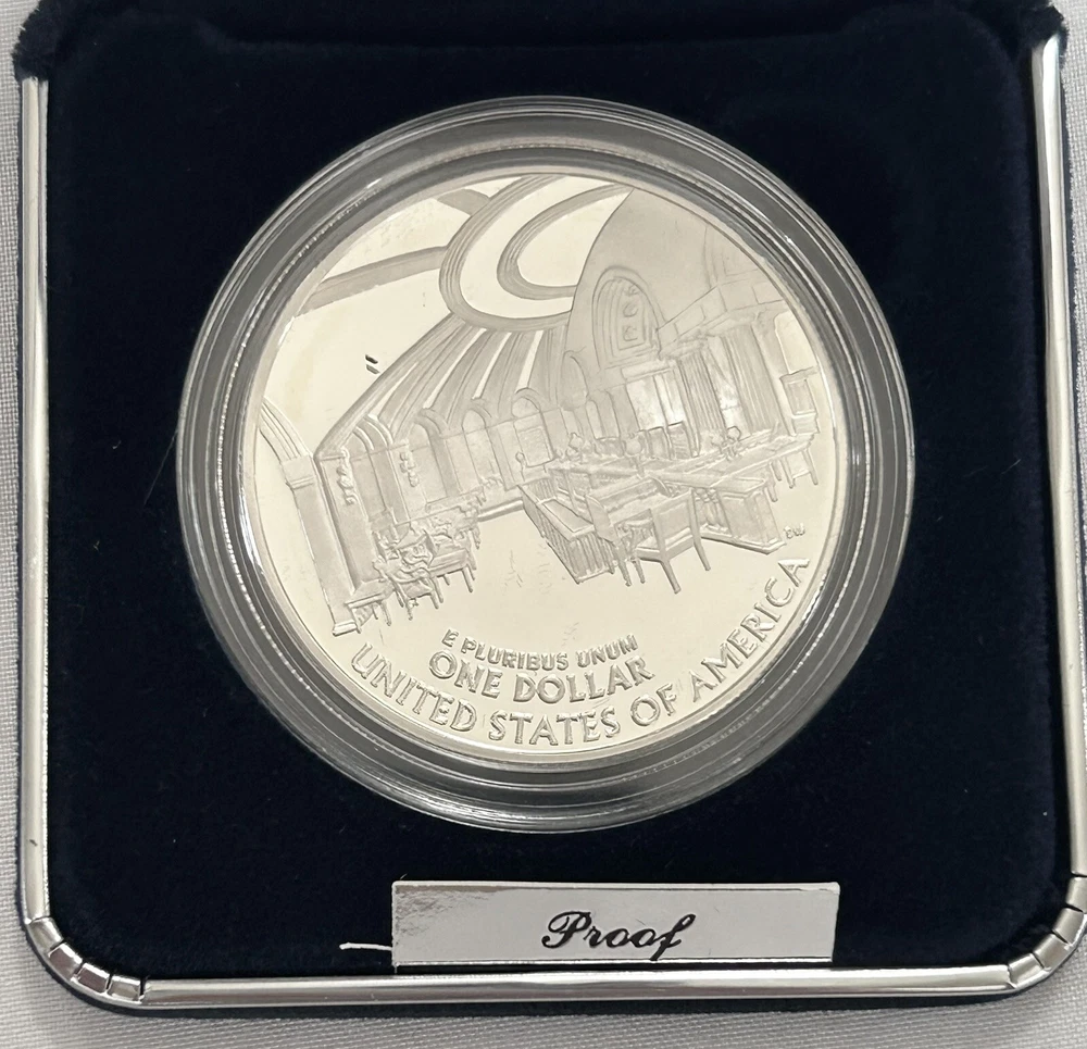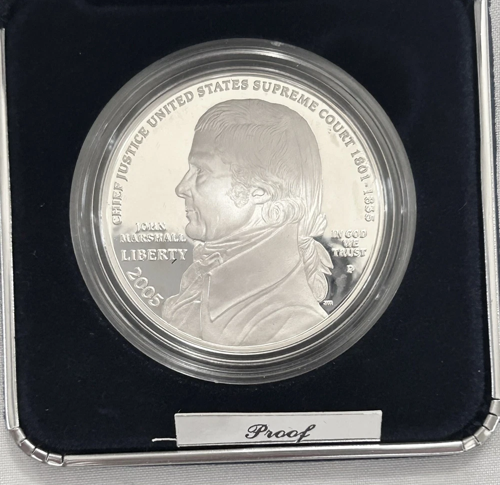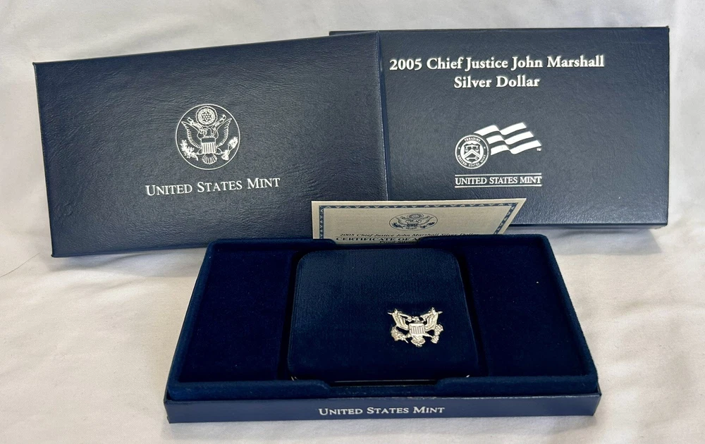 This is an uncirculated 2005 Chief Justice John Marshall Silver Dollar coin from the United States Mint. It features a modern silver/clad composition and has a denomination of $1. The coin was minted in Philadelphia and comes with a certificate of authenticity (COA). It is a commemorative coin that celebrates the legacy of Chief Justice John Marshall. The coin is ungraded and is a great addition to any collection.