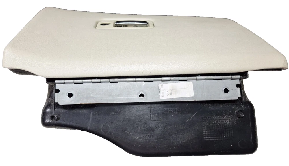This is a genuine OEM glove box storage compartment designed for a 2005 Jaguar X204 S-Type. It is in a beige color with a champagne surface finish, featuring a trim molding panel cover veneer garnish for the front right passenger side of the vehicle. The part number is 2R83F61A10A and it comes with a 1 month manufacturer warranty. Made in the United Kingdom, this glove box compartment is a direct replacement for the original part, ensuring a proper fit and function in the vehicle. Condition Used Seller Notes “Item is in good working condition. Please make sure to check the photos for cosmetic appearance. ... Read more about the seller notes Country/Region of Manufacture United Kingdom Interchange Part Number Glovebox Glove Box Compartment, Trim Molding Panel Cover Veneer Garnish, Front Right Passenger Side, 2R83F060C06AE / 2R83 F060C06 AE, 2005 05, XR850314SEL / XR8 50314 SEL Color Beige Surface Finish Champagne / Color Code: SEL Manufacturer Part Number 2R83F61A10A / 2R83 F61A10 A / 2R83-F61A10-A Other Part Number Jaguar S-Type X204 Brand Jaguar Fitment Type Direct Replacement