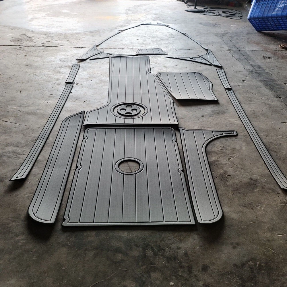 For buyers from USA, we offer DDP(Delivered Duty Paid) shipping. The price + shipping fee covers tariff. You do not need to pay tariff. We could not add the 12 floor color options that you can choose to use to each listing because of quantity limit, when you order it, you can just leave an order note for the floor color that you want to use or you can send us a message, we will always check and confirm the floor color with you before we make the floor for you.You can just order it. 2005 Malibu 25 LSV Cockpit Pad Boat EVA Foam Faux Teak Deck Floor Mat Flooring Please be aware that we can only make this boat floor by the first listing drawing. Before you order it, please double check the listing drawing outline shapes with your boat to make sure they can fit your boat well. As long as the floor pad outline shape can match your boat deck layout, it should fit well.We will not be hold responsible if the listing drawing floors do not fit your boat well because you do not double check our listing drawing. We can only make sure that the floors will be cut exactly by the listing drawing. If you are not sure if the drawing can fit well with your boat, please send us some photos of your boat deck layout or a short video to show your boat deck layout from stern to bow so we can help you to confirm the fitting. The floor comes with marine backing adhesive.It is peel and stick installation.You just need to peel off the white protection paper and put it down. You do not need to buy glue to install it. We offer 1 year warranty for all our boat floors. The EVA floor is 1/4"(6mm) thick two-color pad. You can choose your colors, texture and faux teak option. Additional custom text logos can also be incorporated on EVA floor. All routed logos and beveled edges will show the bottom color selected. All EVA floors come with marine backing glue. All EVA floors listed on our online store are "made to order" and not stocked so please allow up to 2-3 weeks for delivery. EVA floor fabrication time is about 4-5 days, then it will take about 7-10 days’ time to ship and deliver to your order shipping address.After you order it, please double check your order shipping address to make sure all the shipping address, postal code, city name and contact phone number are all correct. We will ship all orders by express shipping such as DHL, FedEX, USP or EMS express. We will choose the shipping courier as we see fit. Color choices: #1 Brown+Black #2 Dark Brown+Black #3 Brown+White #4 Grey+Black #5 Dark Grey+Black #6 Grey+White #7 Grey+Blue #8 Grey+Purple #9 Grey+Red #10 Black+White #11 Black+Red #12 Black+Blue When you order it, please tell us the color you want for top layer and bottom layer. Additional custom text logo fee:30 USD/ea. Before you order it, please verify the floor drawing and confirm that it matches your boat and understand that this cannot be returned without a restocking fee of 30%. We can also make the custom EVA teak decking by the template drawing or full size template that you can supply to us. The listing price does not include any destination duties/taxes/custom fees/etc. that will be due when the product arrives at destination countries/regions. It is the customer's responsibility to pay for all custom duty/taxes/custom fees if any .