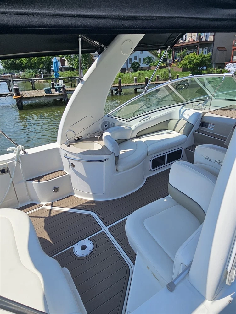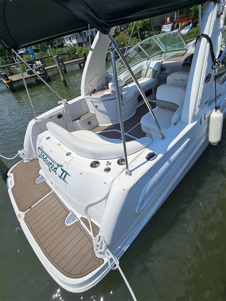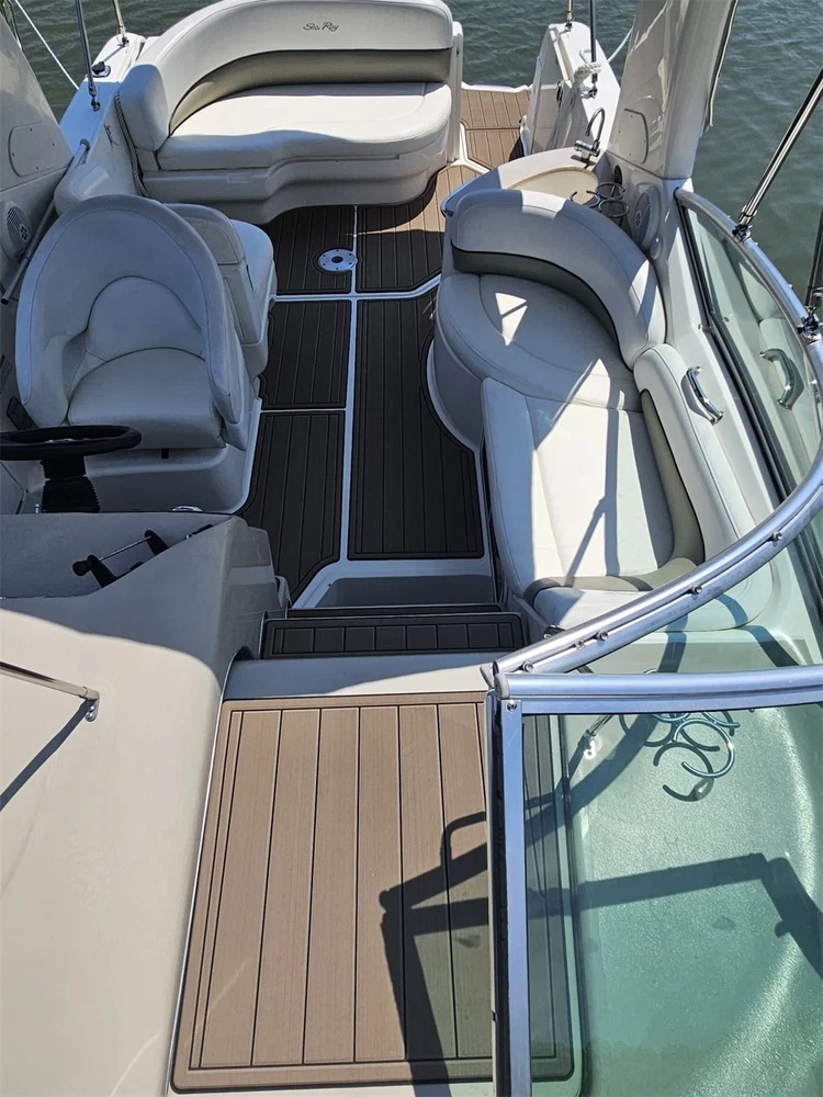 We could not add the 16 floor color options that you can choose to use to each listing because of quantity limit, when you order it, you can just leave an order note for the floor color that you want to use or you can send us a message, we will always check and confirm the floor color with you before we make the floor for you.You can just order it. Please be aware that we can only make this boat floor by the first listing drawing. Before you order it, please double check the listing drawing outline shapes with your boat to make sure they can fit your boat well. As long as the floor pad outline shape can match your boat deck layout, it should fit well.We will not be hold responsible if the listing drawing floors do not fit your boat well because you do not double check our listing drawing. We can only make sure that the floors will be cut exactly by the listing drawing. If you are not sure if the drawing can fit well with your boat, please send us some photos of your boat deck layout or a short video to show your boat deck layout from stern to bow so we can help you to confirm the fitting. The floor comes with marine backing adhesive.It is peel and stick installation.You just need to peel off the white protection paper and put it down. You do not need to buy glue to install it. We offer 1 year warranty for all our boat floors. The EVA floor is 1/4″(6mm) thick two-color pad. You can choose your colors, texture and faux teak option. Additional custom text logos can also be incorporated on EVA floor. All routed logos and beveled edges will show the bottom color selected. All EVA floors come with marine backing glue. All EVA floors listed on our online store are “made to order” and not stocked so please allow up to 2-3 weeks for delivery. EVA floor fabrication time is about 4-5 days, then it will take about 7-10 days’ time to ship and deliver to your order shipping address.After you order it, please double check your order shipping address to make sure all the shipping address, postal code, city name and contact phone number are all correct. We will ship all orders by express shipping such as DHL, FedEX, USP or EMS express. We will choose the shipping courier as we see fit. Color choices: #1 Black over Brown #2 Black over Dark Grey #3 Black over Green #4 Black over Red #5 Black over White #6 Brown over Black #7 Brown over White #8 Coffee over Black #9 Dark Grey over Black #10 Dark Grey over Grey #11 Grey over Black #12 Grey over blue #13 Grey over Purple #14 Grey over Red #15 Grey over White #16 Black over Blue When you order it, please tell us the color you want for top layer and bottom layer. Additional custom text logo fee:50 USD/ea. Before you order it, please verify floor drawing and confirm that it matches your boat and understand that this cannot be returned without a restocking fee of 30%. We can also make the custom EVA teak decking by the template drawing or full size template that you can supply to us. The listing price does not include any destination duties/taxes/custom fees/etc. that will be due when the product arrives at destination countries/regions. It is the customer’s responsibility to pay for all custom duty/taxes/custom fees if any. 1.EVA material is a high-density sponge, does not absorb moisture 2.No blackening/darkening in humid environment 3.Hardness: Around 55-50 degrees 4.Soft & Comfortable 5.Easy maintenance(Use of common cleaning agents, rinse with brush and water 6.High and low temperature resistance 7.Sound insulation and anti-vibration 8.Easy replacement,Easy installation,No additional auxiliary materials required 9.UV resistant without color fading 10.Support for customized services(Colors and patterns) Precautions before payment: 1.Please check if the boat model match your Yacht model。 2.Some ship models have different configurations with different options, please pay attention to choose the most suitable one 3.If not sure whether your ship matches the drawings, please send us photos of swim platform and cockpit, we could help to determine if it is appropriate 4..If need to verify the size, please feel free to contact us Order colors: 1.If request color not included in color cards, need to waiting the other 10-15 days. Parcels can be sent out within 20 days(Start from the moment of payment done), extend the cycle when it comes to holidays 2.The picture colors for reference only, based on actual color(Photos taken by cell phones easy to present the chromatic aberration) For design: 1.We could design drawings according to the customer’s requirements(Free of Charge) 2.We could provide design drawings for your choices 3.Support LOGO customization(50USD/ea), document is needed, format file: DXF/AI/PDF/JPJ/PNG etc. For Installation: 1.Need to use acetone or alcohol to clean the floor before installation(To remove surface wax of new ships), make sure it is dry before starting the installation. 2.Lay all EVA floors flat before installation. When confirming the location, tear off the backing adhesive from one corner and start the installation 3.Fix it when pasting, cannot move EVA floors 4.Rolling with round rollers during installation process(Need to finger press LOGO position in advance to avoid air in it). If air generated, remove it by use of a small needle to pierce the air bubble 5.No soaking within 48 hours after installation Making Templates: If no matching ship model in our sale list, pls provide template we could produce it based on your template’s requirement Reference image to create template Make a note in the package to remark contact details, name, the brand of small ship/model/year of production, we will contact you immediately We will send design drawings to you for confirmation within 5 days after template received Complete production and send package within 3-5 days after confirmation of drawings(after payment done) Package: Soft material. Rolled and packed for shipment. Outer box package Shipment Express courier: DHL FEDEX TNT UPS 