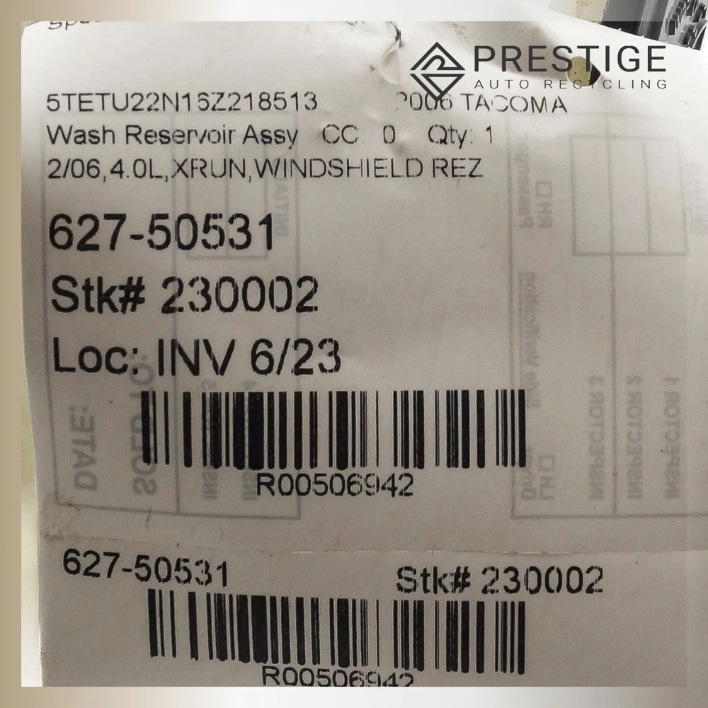 Prestige Auto Parts - Product Page Local pick-up available at 3400 Sunrise Blvd, Rancho Cordova, CA 95742 2005-2016 TOYOTA TACOMA Windshield Washer Fluid Reservoir Bottle 85315-04090 OEM Not sure if the part fits? Send us your VIN, and we'll verify compatibility for you! Item Condition The item is in good condition, fully operational, and demonstrates normal signs of use. Please note that, as a used part, it may show light scuffs, scratches, or other minor imperfections, as shown in the photos provided. WHEN YOU BUY FROM US YOU AGREE TO OUR TERMS AND CONDITIONS: It is the buyer's responsibility to carefully inspect all of the photos for details and/or request more photos if necessary, what you see in photos is exactly what you will receive. Before purchase, the buyer MUST verify that the item will fit their vehicle. PLEASE NOTE: Make sure to verify fitment independently with your local dealer, information in the “compatibility” section is generated by eBay Motors, not from us. IF YOU HAVE ANY QUESTIONS, CONTACT US VIA EBAY MESSAGING BEFORE PURCHASING. Payment We accept PayPal, VISA, MasterCard, Discover, and American Express. Sales tax collected by eBay where applicable. For local orders, pay on pickup available. Shipping Most items ship within 24 hours of payment; items paid for on the weekend or holidays ship on the following business day. We ship by FedEx, UPS, USPS, and regional freight/LTL carriers, whichever option is most affordable and/or faster. Shipping prices for ground apply only to the continental United States. Anywhere else is considered international shipping and will have an international shipping rate. Any international customs fees are the responsibility of the buyer. Any free shipping we offer is for the continental United States only. If you are from Hawaii, Alaska, or a Territory of the United States, please request a shipping total before bidding and we will do our best to keep the cost low. For orders placed outside of the United States, we ship ONLY through the eBay Global Shipping Program. If you are outside of the US, use the eBay international shipping tool above to receive a price for shipping costs. Local pickup and delivery options also available, please contact us for arrangements. PLEASE NOTE: Oversized items like engines, transmissions, bumpers, doors, hoods, trunk lids, fenders and other similar items will be shipped via Freight Shipping and MUST be shipped to a business address with a dock or forklift access; otherwise, liftgate and/or residential delivery fees may apply. YOU MUST CONTACT US FIRST FOR A QUOTE BEFORE PURCHASING SAID ITEMS. Warranty and Returns All returns must be made within 30 days of item being received by the customer only if the item is non-functional or if it differs substantially from the description. Buyer is fully responsible for shipping cost of the return. We are not liable to pay for any labor fees associated with the installation or removal of any parts sold by us. All electronics are tested before removed from vehicle. IF NOT FUNCTIONAL, WE WILL NOT SELL. If the item is defected we will state accordingly and is sold for parts only. If you have any questions about the part you’re bidding on, PLEASE ASK QUESTIONS PRIOR TO BIDDING. 90 DAY WARRANTIES are available. Contact Us If you have questions about any part, please contact us BEFORE purchasing via eBay messaging. HOW DID WE DO? We are a small, family owned business dependent on our valuable customers. Once you have received your item in satisfactory condition, would you be so kind as to leave us feedback? If there is a concern that would cause you to want to leave negative feedback, please contact us first and we will do our best to resolve the issue. Thank you and God bless! © 2025 Prestige Auto Recycling. All rights reserved.