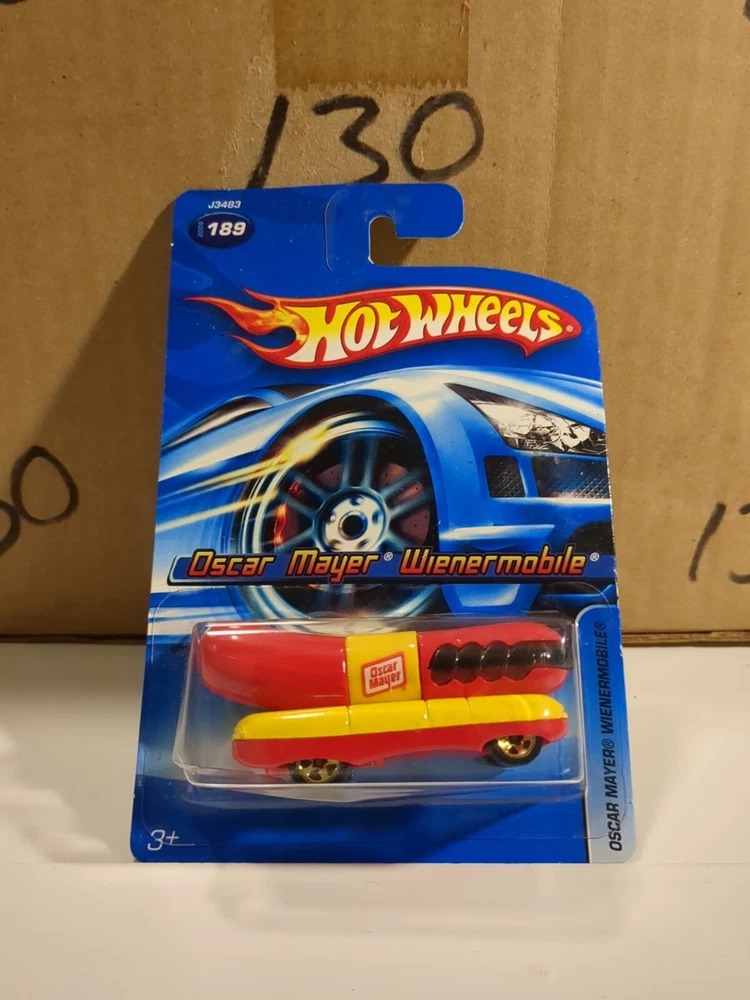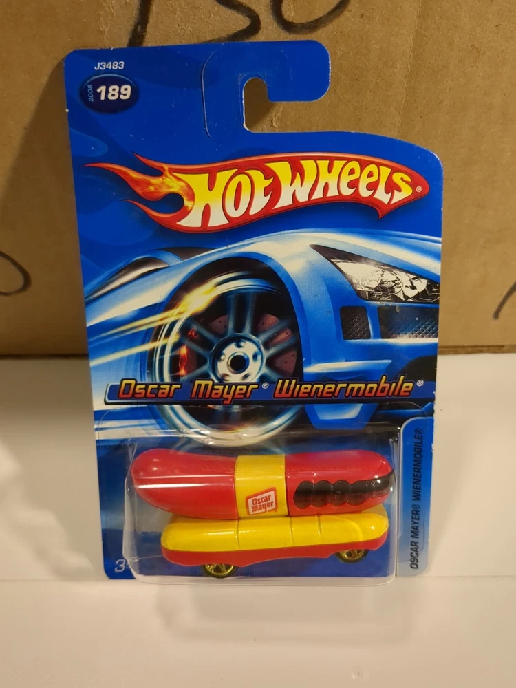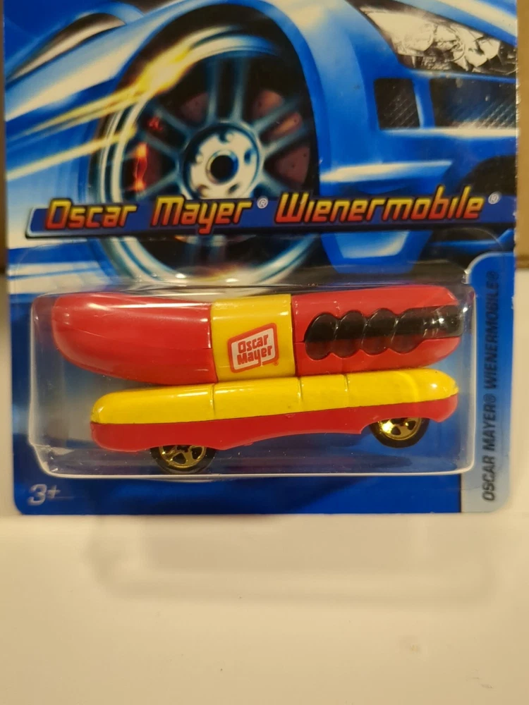 This 1:64 scale die-cast metal and plastic Hot Wheels car is a must-have for collectors and fans of the Oscar Mayer brand. The car features a red and yellow color scheme with gold 5 spoke wheels and comes in an unopened box. The vehicle is a Hot Wheels Mainline model from 2006 and is recommended for ages 3 and up. The car is part of the Die Cast Cars character family and was manufactured in Malaysia. It is a great addition to any collection and makes for a fun toy for boys and girls alike. Don't miss out on the opportunity to own this unique and rare Hot Wheels car. See pics for condition issues,,,dent on blister