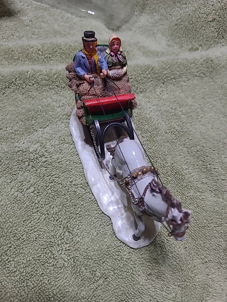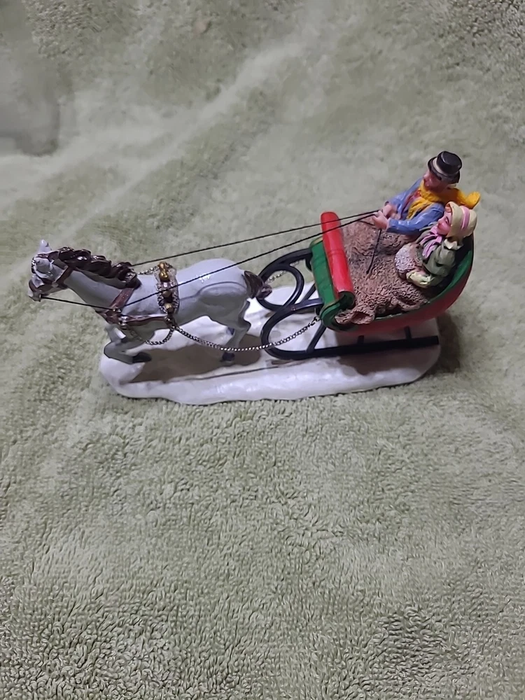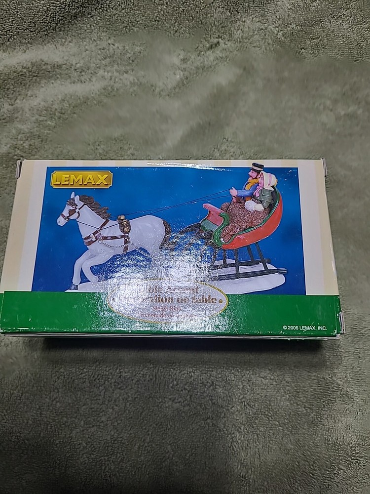 2006 LEMAX Sleigh Ride Couple #63571 Table Accent Christmas Village. In good condition. Been well taken cares of. Come with a box. Box as wear.
