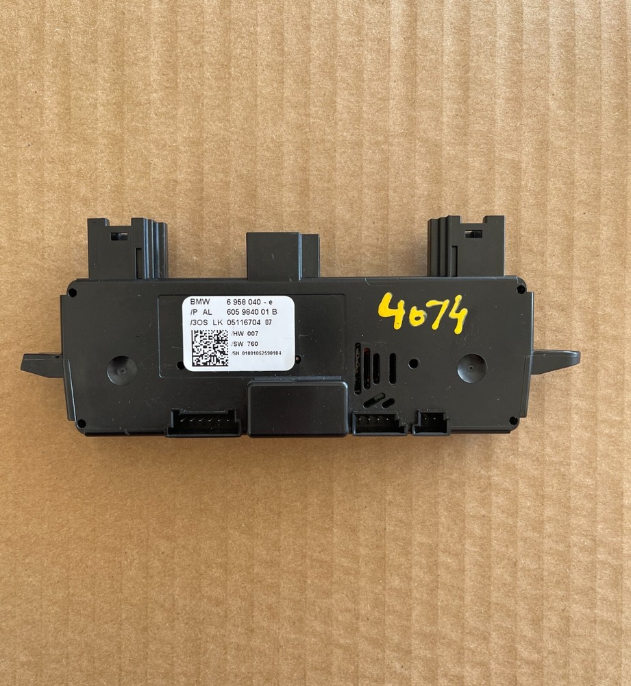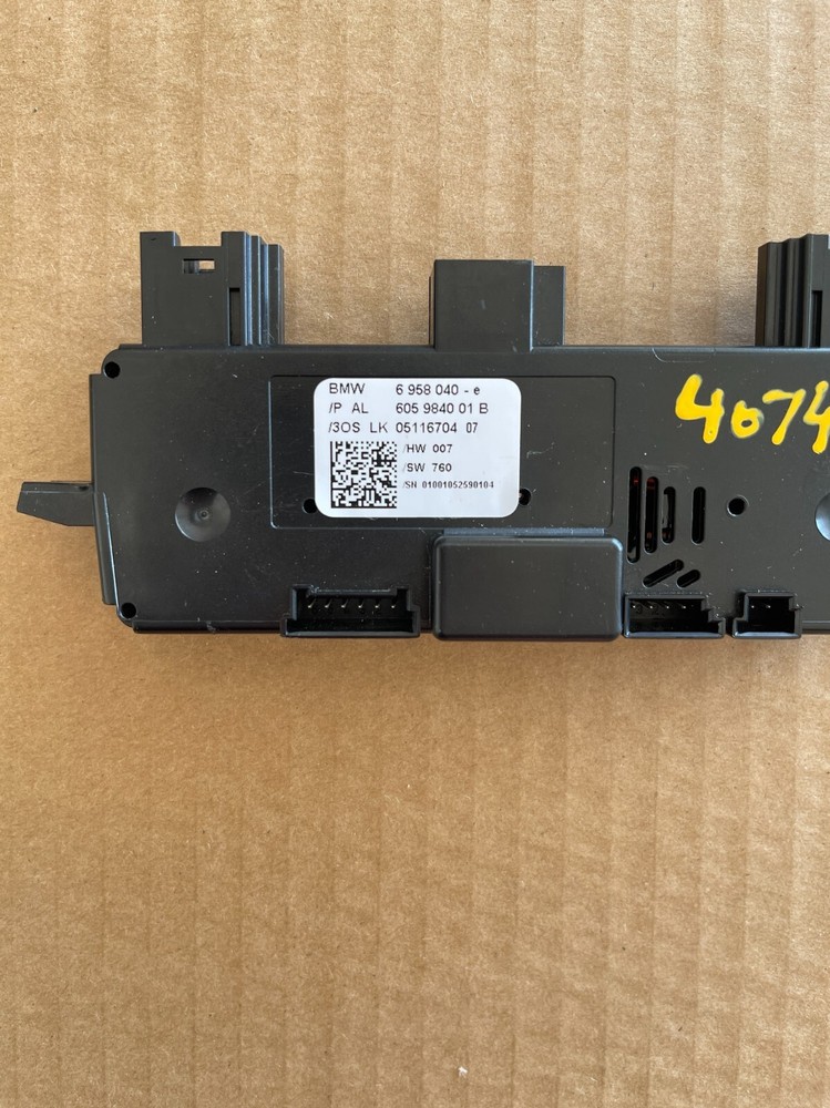 DESCRIPTION 2006-2008 BMW 750I STEERING COLUMN CONTROL MODULE UNIT ASSEMBLY OEM 6958040 ITEM DETAIL PART NUMBER: 6958040 PLEASE MATCH THE PART NUMBER AND VERIFY THAT YOU ARE GOING TO BUY. ACTUAL PART PHOTO'S ARE AT THE TOP OF THIS PAGE. USED/GOOD CONDITION IF YOU HAVE ANY QUESTIONS, COMMENTS, OR CONCERNS PLEASE CONTACT US AND WE WILL BE HAPPY TO ASSIST YOU . POLICIES All our auto parts are USED parts and will show normal wear and tear, unless otherwise stated in the item description. We have a variety of engine computers, modules, switches, fuse boxes, and a large variety of other parts from different domestic and import manufacturers. For more details, please check our eBay store. Additional pictures will be provided upon request. The item in the picture is the exact item you will receive. We will appreciate very much if you contact us before putting a negative/neutral feedback or open a case in order to take care of any issues regarding your order. SHIPPING We ship to all states within the U.S. including Puerto Rico, Hawaii, and Alaska but shipping to Hawaii, Alaska, Puerto Rico or any other international location please email us for shipping price before purchasing the item. In order to ensure the security of all parties, we will only ship to the address confirmed by PayPal. We ship immediately when the payment is received. FREE shipping is within the continental U.S. 48 States. PAYMENT Pay securely with any major credit card through PayPal as we accept PayPal payments. THANK YOU FOR YOUR BUSINESS, TIME, AND TRUST. WE LOOK FORWARD TO DO BUSINESS WITH YOU AGAIN