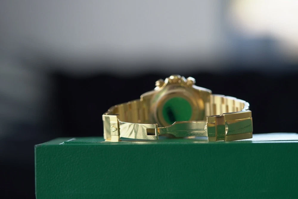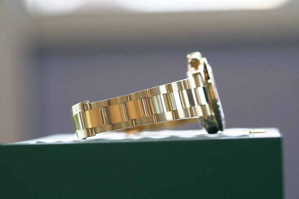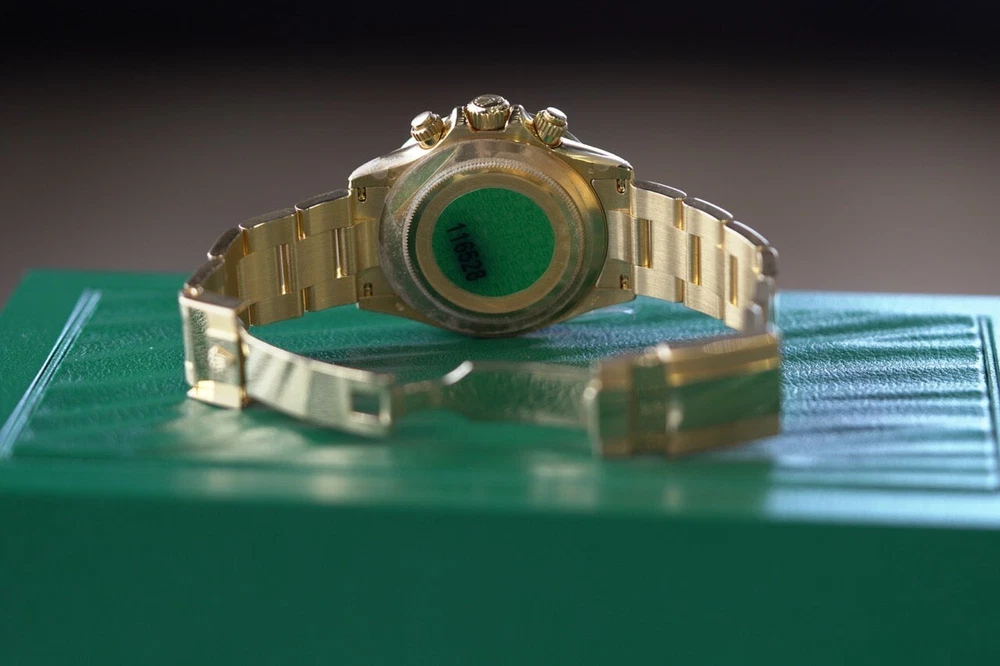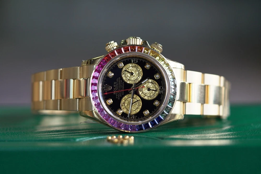 2007 Rolex Daytona Yellow Gold 40mm Black Custom Rainbow Sapphire Bezel 116508 DESCRIPTION Brand: Rolex Model: Daytona Reference: 116508 Size: 40mm Material: Yellow Gold FEATURES Dial: Black Bezel: Fluted Bezel Crystal: Sapphire Crystal Case: Yellow Gold Bracelet: Yellow Gold, Oyster Box: No Papers: No Payment Method All Major Debit & Credit Cards are accepted! Shipping Policy All orders will be shipped via FedEX, Overnight Fully Insured. All orders will be delivered to a FedEX Office (Hold At Location) For Pickup Shipments will only be made on business days, not on weekends or national holidays Buyers are responsible for all duties and taxes. The purchase price does not include import duties, taxes, and/or charges for international shipments. Return Policy ALL SALES ARE FINAL, NO RETURNS OR REFUNDS Terms & Conditions Every watch we sell goes through a meticulous 7-step authentication process, done by our in-house watch professionals. An unauthentic watch has NEVER passed through our system undetected. If we sell it, you can be confident that you're buying a genuine, original product. Authenticity is the single most important part of our business, and makes up who we are. It is our promise to you. Please note that NY buyers will be subject to 8.875% sales tax WATCHXNYC INC.
