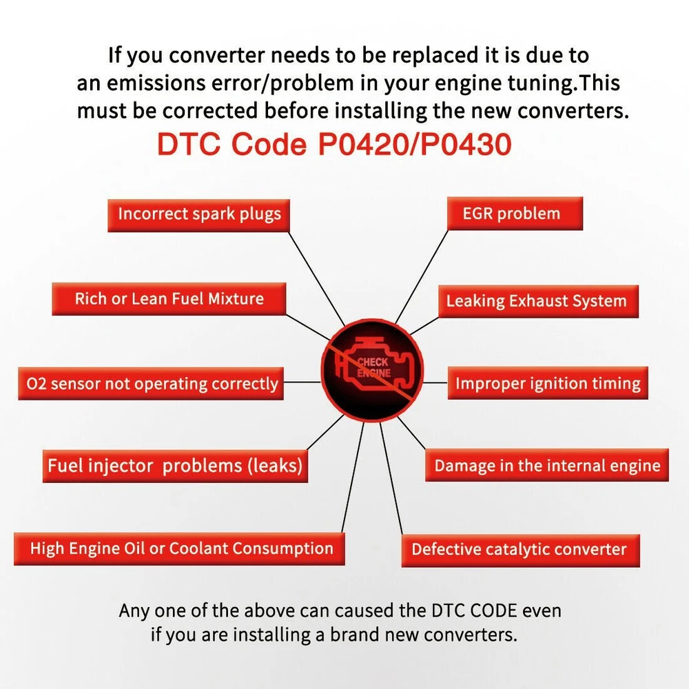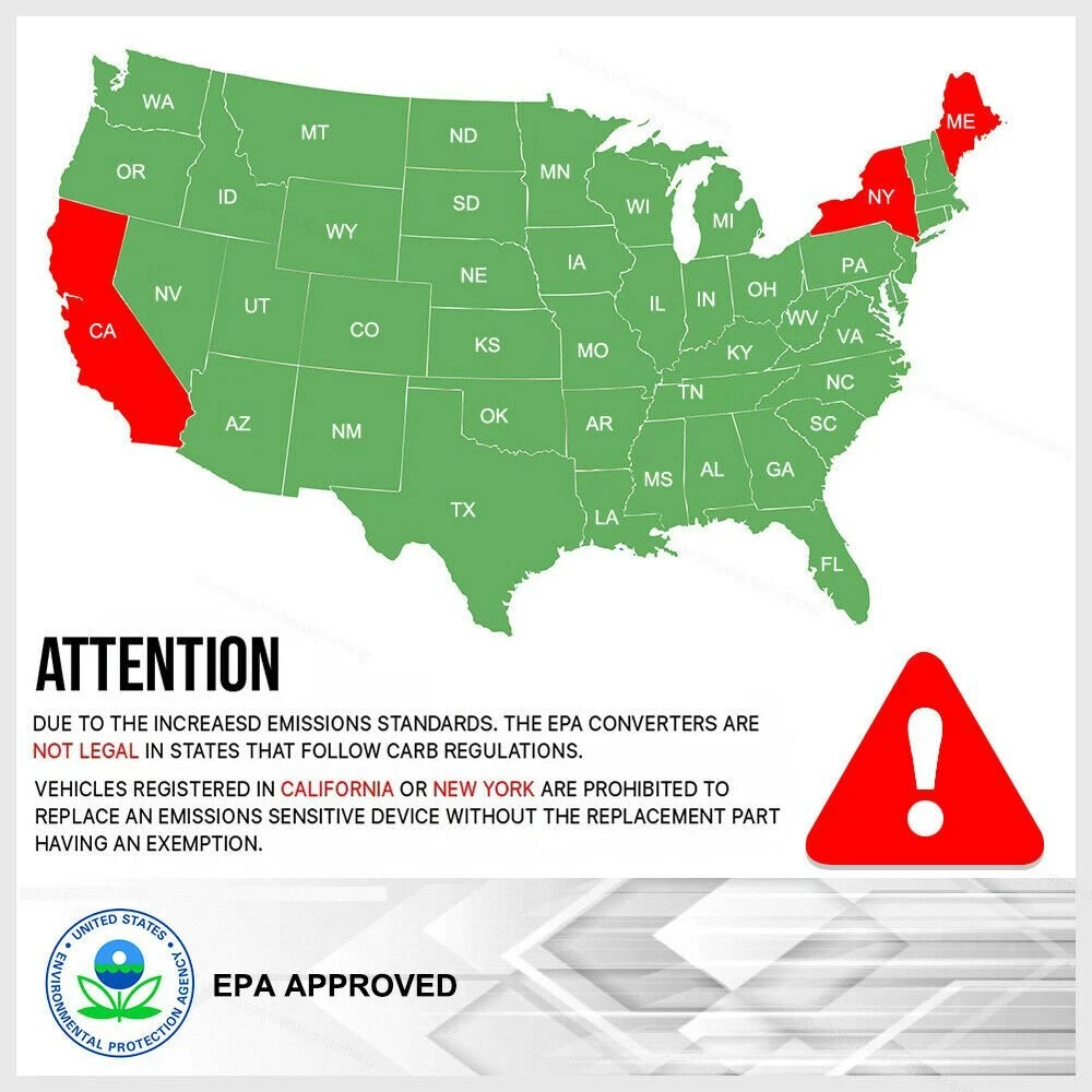Specification: Tube material:Stainless Steel Substrate Material: Ceramic Dimensions:14.5 in. overall length Inlet type:Single (7-bolt welded flange) Outlet type:Single (2-bolt welded flange) Product fit: Direct Fit Restricted States: California, New York, Colorado & Maine Condition:New Compatible For: 2007-2008 For Dodge Caliber 2.4L ( AWD Only ) 2007-2017 For Jeep Compass 2.4L ( 4WD Only ) 2007-2017 For Jeep Patriot 2.4L ( 4WD Only ) Package Included: 1x Catalytic Converter w/Installation Accessories 【Protecting the Earth】 The internal structure of the high flow catalytic converters features honeycomb. Its internal ceramic substrates contain high-load precious metal catalysts, including Pt, Rh, and Pd, to enhance purification efficiency and intensity. They can effectively purify vehicles the waste exhausts by converting pernicious gases, such as CO, HC, NOx into CO₂, H₂O, N₂, to protect the beautiful earth we are living in better. 【Stainless Steel Shell 】 The catalytic converter is made of heavy-duty stainless steel, which is highly resistant to corrosion and high temperatures. 【Large-area Ceramic Substrates 】 The enlarged honeycomb ceramic substrate can fully react with sufficient catalysts, resulting in higher efficiency and green emissions and improved service life. 【 Compliance with OBD III 】 The direct-fit catalytic converter is compliant with OBD III Standards but not with CARB. Thus, it can be used in most states except California, not legal for use on vehicles required to meet CA emission standards. 【 EPA Compliant 】 The catalytic converter is OE style and easily mounted with bolts. It is also EPA certified for reliability. KAC offers catalytic converters manufactured with a stainless-steel body, aluminized pipe and heat shields, that provide you peace-of-mind with assured compliance by engineers who set the standard. About KAC KAC is a highly respected brand in the automotive parts market, recognized for its exceptional product quality and unparalleled service. KAC is dedicated to innovation and dependability, providing a comprehensive range of parts for all types of vehicles. With a strong commitment to customer , KAC is the go-to brand for all your automotive needs. KAC CATALYTIC CONVERTERS KAC offers catalytic converters manufactured with a stainless-steel body, aluminized pipe and heat shields, that provide you peace-of-mind with assured compliance by engineers who set the standard. Whether it’s universal or direct-fit, catalytic converters feature an optimal high-technology washcoat and OE-design precious metal load that deliver required reduction in tailpipe emissions to match vehicle application. When selecting which catalytic converter is best for your vehicle, consult your state’s aftermarket converter regulations. Converters don’t fail on their own, complete these five checks before replacing a catalytic converter: 1. Retrieve / repair all PCM trouble codes, check for any available TSBs or PCM re-flash updates 2. Repair all exhaust leaks 3. Make sure vehicle is in proper fuel control 4. Always check for internal coolant leaks and excessive oil consumption 5. Make sure you have the right part for the application WHY A CATALYTIC CONVERTER FAILS Converters don’t fail on their own; failure is usually a symptom of a larger problem. This is why it is important to identify the root cause of the failure and perform the repair prior to installing a new converter. Most catalytic converter failures fall under one of three categories: Overheated, melted or broken converters Coated/oil-fouled substrate Structural damage WHAT TO DO IF CHECK ENGINE LIGHT COMES ON? Troubleshoot an illuminated check engine light by making sure the gas and oil caps are on tight and that the oil dipstick is seated correctly. If the light remains lit, it could be triggered by a faulty oxygen sensor, failing catalytic converter, bad spark plugs, malfunctioning thermostat or bad mass air flow sensor. If the light remains on, make sure to make an appointment with your service provider as soon as possible. WHAT IS THE DIFFERENCE BETWEEN EPA AND CARB CONVERTERS EPA-compliant catalytic converters are for use on EPA or Federal emissions certified-vehicles. EPA-compliant catalytic converters cannot be sold or installed in California and Colorado and in certain circumstances in Maine and New York . In those states, you must install a CARB-compliant catalytic converter on CARB emissions certified vehicles in the states of California and Colorado, on all vehicles. CARB-compliant converters contain more catalyst material in order to converter emissions more efficiently and comply with stricter emissions reduction requirements. Check the vehicle’s emissions control information label and consult your state’s aftermarket converter regulations to select the right catalytic converter. Payment 1) we accepts all major credit cards via PayPal: MasterCard, Visa, American Express and Discover. 2) We will only ship to the confirmed PayPal shipping address given with the payment. Please make sure your PayPal and eBay address is correct. If not, please correct it before payment. Thank you. 3) If you want to ship to another address, please change your PayPal shipping address before you make payment. 4) To avoid initiating an unpaid item claim, please pay within 7 days. 5) Custom duties, taxes, or charges are not included in the cost you pay to us. Shipping We only ship this item to United States ! 1. We ship to your eBay address. Each package will be shipped by UPS or Fedex with tracking number. 2. Ship within 1 business day once payment completed. Orders placed on weekend will be shipped within 3 days. 4. Seriously promise: Refund or resend will be offered if item still not arrive in 7-10 business days. Just send us an email ,we will give you a satisfied solution as soon as possible. Return Policy If you send us an e-mail, it will be answered within 48 hours during our working hours. Please 