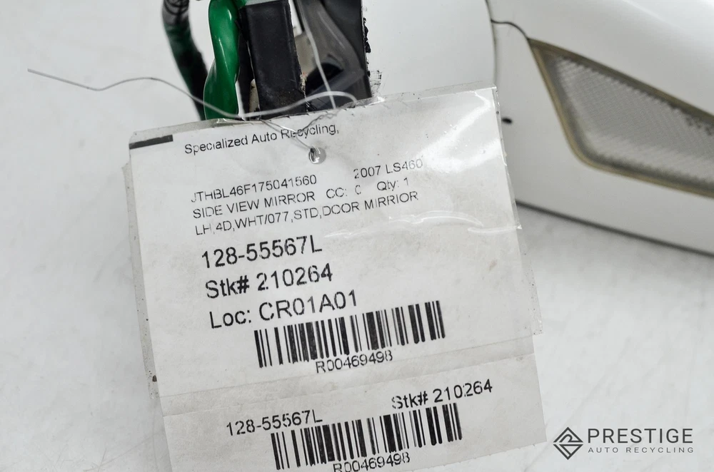 Prestige Auto Recycling Prestige Auto Recycling Rancho Cordova, CA Business Hours (PST/PDT) Mon - Fri 8am - 5pm Saturday 9am - 4pm Closed Sat & Sun Door Mirror Year: 07 Model: LEXUS LS460 Side: Left Type: Used Category: U Condition: 0.0 VIN: JTHBL46F175041560 Vehicle Stock #: 210264 Part Stock #: 0000469498 Additional notes: Lh,4d,wht/077,std,door Mirrior Interchange: Pwr, LH Also fits: LEXUS LS460 07-09 Power, LH LEXUS LS600 08-09 Power, LH Search for more parts from this donor vehicle Search for more parts for LEXUS LS460 When you buy from us you agree to our terms and conditions: Item Condition Good condition, normal use, as shown in the photos. Item may show light scuffs, scratches or other imperfections as a result of this being a used part . The buyer is required to carefully inspect all of the photos for details and/or request more photos if necessary: what you see in photos is exactly what you will receive . Before purchase, the buyer must verify that the item will fit their vehicle. Please Note: Make sure to verify fitment independently with your local dealer, information in the "compatibility" section is generated by eBay Motors, not from us. If you have any questions, contact us via eBay messaging before purchasing. Airbag Notification If the item above is an airbag, I certify this airbag is not subject to recall and will be shipped in accordance with hazmat shipping requirements . Payment We accept Paypal, VISA, MasterCard, Discover, American Express, and payments transacted through eBay Managed Payments. Sales tax collected by eBay where applicable. For local orders, pay on pickup available. Shipping Most items ship within 24 hours of payment; items paid for on the weekend or holidays ship on the following business day. We ship by FedEx, UPS, USPS, and regional freight/LTL carriers, whichever option is most affordable and/or faster. Shipping prices for ground apply only to the continental United States. Anywhere else is considered international shipping and will have an international shipping rate. Any international customs fees must be paid by the buyer. Any free shipping we offer is for the continental United States only. If you are from Hawaii, Alaska, or a Territory of the United States, please request a shipping total before bidding and we will do our best to keep the cost low. For orders placed outside of the United States, we ship ONLY through the eBay Global Shipping Program. If you are outside of the US, use the eBay international shipping tool above to receive a price for shipping costs. Local delivery and local pickup options are also available; please contact us for arrangements. Please Note: Oversized items like engines, transmissions, bumpers, doors, hoods, trunk lids, fenders and other similar items will be shipped via Freight Shipping and must be shipped to a business address with a dock or forklift access; otherwise, liftgate and/or residential delivery fees may apply. You must contact us first for a quote before purchasing said items. Warranty and Returns All returns must be made within 30 days of item being received by the customer only if the item is non-functional or if it differs substantially from the description. Buyer must pay the shipping cost of the return. We do not warrant or reimburse labor fees associated with the installation or removal of any parts sold by us. All electronics are tested before removed from vehicle. If not functional, we will not sell. If the item is defected we will state accordingly and is sold for parts only. If you have any questions about the part you're bidding on, please ask questions prior to bidding. 90 day warranties are available Contact Us If you have any questions regarding an eBay item, please contact us BEFORE purchasing via eBay messaging . How Did We Do? We are a small, family-owned business dependent on our valuable customers. Once you have received your item in satisfactory condition, would you be so kind as to leave us feedback? If there is a concern that would cause you to want to leave negative feedback, please contact us first and we will do our best to resolve the issue. Thank you and God bless! Powered by Checkmate