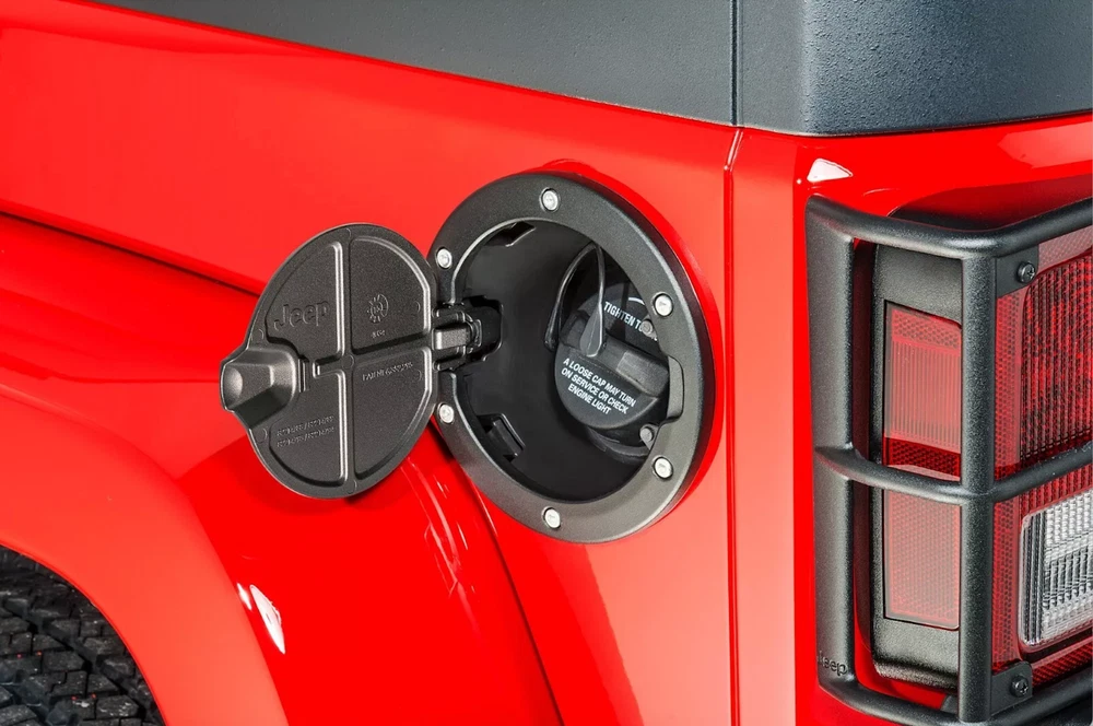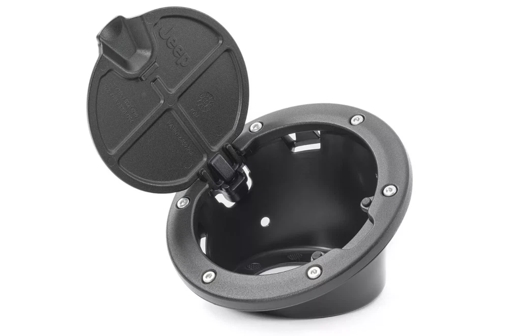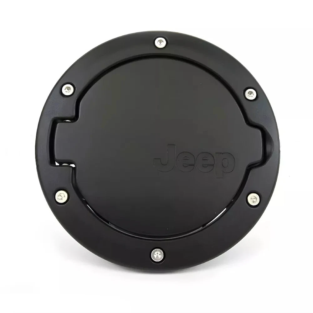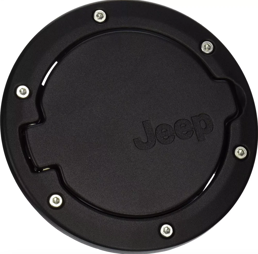 Fuel Door Hatches for '07-18 Wranglers JK & Unlimited, 2 & 4 door. Easy, no-drill installation takes less than five minutes and uses existing mounting points and hardware. The compact, concealed cam-action hinge and corrosion-resistant hardware provide years of smooth, trouble-free operation. These great-looking fuel doors resist scratches, chips, dings and weathering for a long life. Satin Black, aluminum, rugged bolt-on look, Jeep logo. Includes door, mounting ring, fasteners and unique mounting cup. Includes single-piece fuel door with production-style hinge. Easy installation, smooth door operation, and meets all FCA US corrosion standards.
