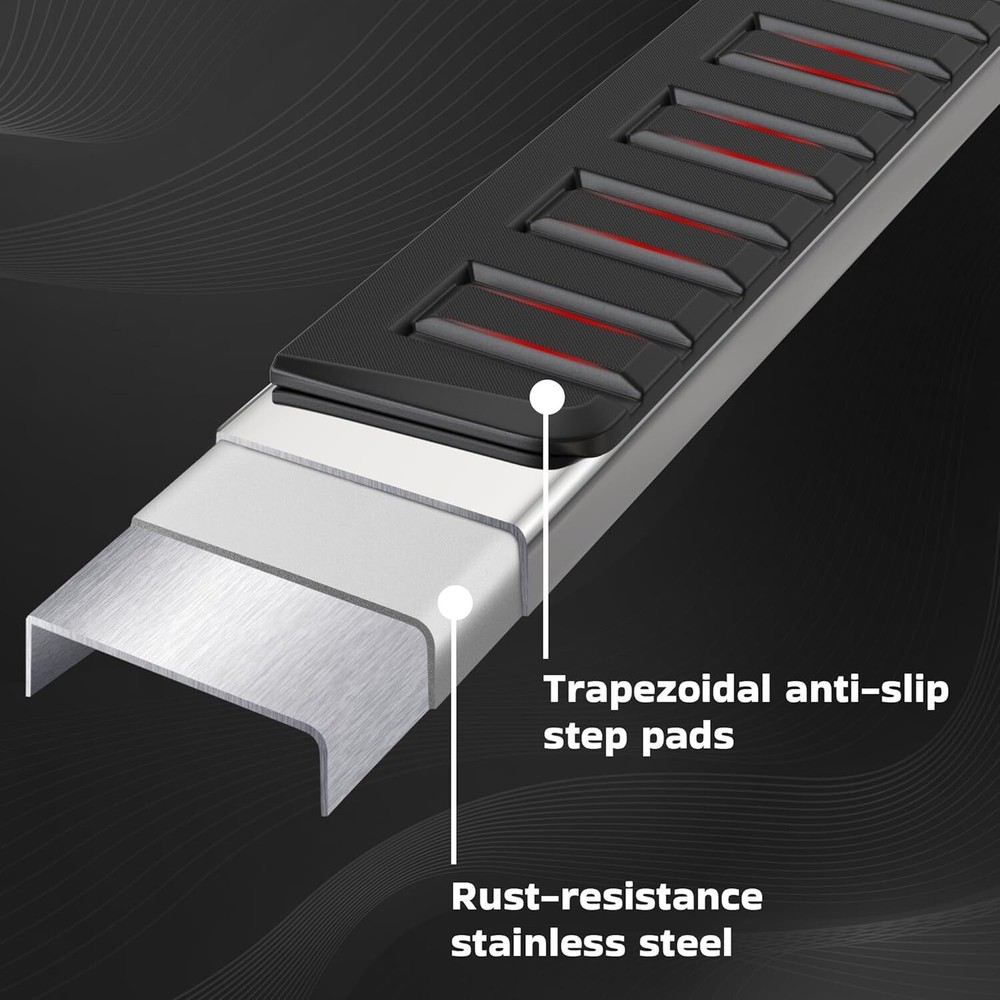 6 inches Running Boards Side Steps Compatible for 2007-2021 Toyota Tundra Crew MAX Cab (4 Full Size Doors) Product Description About this item 【Fitment】:Compatible for 2007-2021 Toyota Tundra Crew MAX Cab (4 Full Size Doors) 【Quality material】KUIPERAUTO running boards are made of rugged aluminum alloy that can hold up to 500 pounds and are coated with a protective black powder particle coating. We have a mature process, materials are constantly upgraded. The aluminum alloy used has higher strength and corrosion resistance. Combined with powder coating, it can protect running boards from rust. 【Anti-slip and anti-rust performance】① Anti-slip: there are two anti-slip step pads on each side step. Anti-slip step pads have raised trapezoidal modules with grain patterns, which greatly increase the friction on the one hand, and quickly drain water on the other hand to reduce the risk of slipping. ② Rust prevention: rust-resistant coating has been verified, and can effectively prevent running boards from rusting, wear resistance, scratch resistance and ultraviolet resistance, and increase the life of running boards 【Increased to 6 inches】The width of running boards has been increased to 6 inches. On the one hand, the wider surface can make it safer for passengers to get on and off the car, and on the other hand, it can increase the contact area with the sole to prevent slipping. 【Package Contents】Easy to install with direct bolt-on connections, no drilling required. The package includes 1 right-side running board, 1 left-side running board, and all necessary hardware. These boards are exclusively designed for Crew MAX Cab vehicles. Please verify fitment before purchase. Payment Delivery Details Return Feedback Contact us Payment We accept payment by any of the following methods: Delivery Details Shipping Time Your item will ship within 3 days (Mon-Fri) of your cleared payment. Items will be shipped to the shipping address you specify via Paypal only. We are NOT able to change the shipping address once payment has been made. A tracking number will be provided once your item has shipped. Domestic Buyers No shipping to PO BOX and APO addresses. No shipping to PR, AK, HI. International Buyers International buyers please note: Import duties, taxes and charges are not included in the item price or shipping charges. These charges are the buyer's responsibility. Please check with your country's customs office to determine what these additional costs will be prior to bidding/buying. Return All returns must have RMA number. Returns with no RMA number will be avoided! 1. Changed your mind and don't want the item anymore? We back our products with a 30-DAY SATISFACTION GUARANTEE! (Item must be in the original condition as it was received. 30 Days Refund, 30 Day Replacement.). Brand New items will have 30 days warranty or replacement policy. 2. Restocking fees will be charged ONLY on Brand New items. 3. Defective/Dead items will be fully refunded or replaced after matching the serial number with the one in our records. 4. Mobile phones and tablets MUST be restored to factory setting. 5. If your order arrives incorrect or the package is damaged in result of a carrier company, you must notify us within 4 days of receipt. Defective items will be credited only after matching the serial number with the one in our records. We are aware of all fraud cases and have all the items details in our records. 6. If there is a quality issue or malfunction with the product, we strongly suggest you to contact the original manufacturer. 7. Any item needed to be returned must be securely packaged, insured and shipped with tracking for safety. We cannot be responsible for lost damaged packages. We carefully inspect returned items upon receipt before any possible refunds, credits, or exchanges. Feedback Customer satisfaction is our top priority. Please give us a chance to resolve any issues before posting a feedback. If you have any problem with your order, please contact us and we will do our best to make you satisfied. Contact us Business Hours: Monday - Friday : 9:30AM – 5:30PM Eastern Standard Time. Saturday, Sunday Closed. For any questions or concerns, please feel free to contact us!