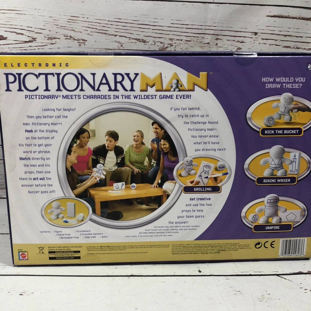 GTIN:0027084558036Type:Complete GameBrand:MattelGame Title:Pictionarygtin13:0027084558036Game Type:Family GameMPN:M1009Features:Automatic/Electronic Table, Giant Game VersionRecommended Age Range:14+Theme:StrategyUPC:0027084558036Gender:Boys & GirlsMin. Number of Players:2 playersYear:2008Award:Games 100Age Level:17 Years & Up, 8-11 Years, 3-4 Years, 4-7, 12-16 Years