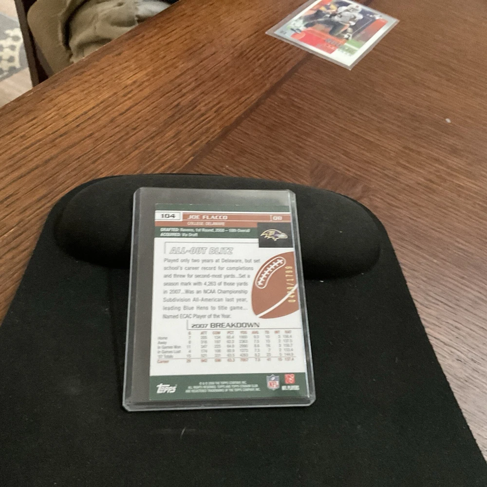 This 2008 Topps Stadium Club trading card features Joe Flacco, the quarterback for the Baltimore Ravens. The card is numbered #104 out of 1799, making it a great addition to any collection. It is a rookie card and is perfect for fans of the sport. The card is in great shape and is a must-have for any collector. The card is part of the sports trading card category and is a great item to add to any sports memorabilia collection. It is a rare find and is perfect for fans of the Baltimore Ravens or collectors of Joe Flacco cards. The card is graded as ungraded and is a great item for anyone looking to start their collection.