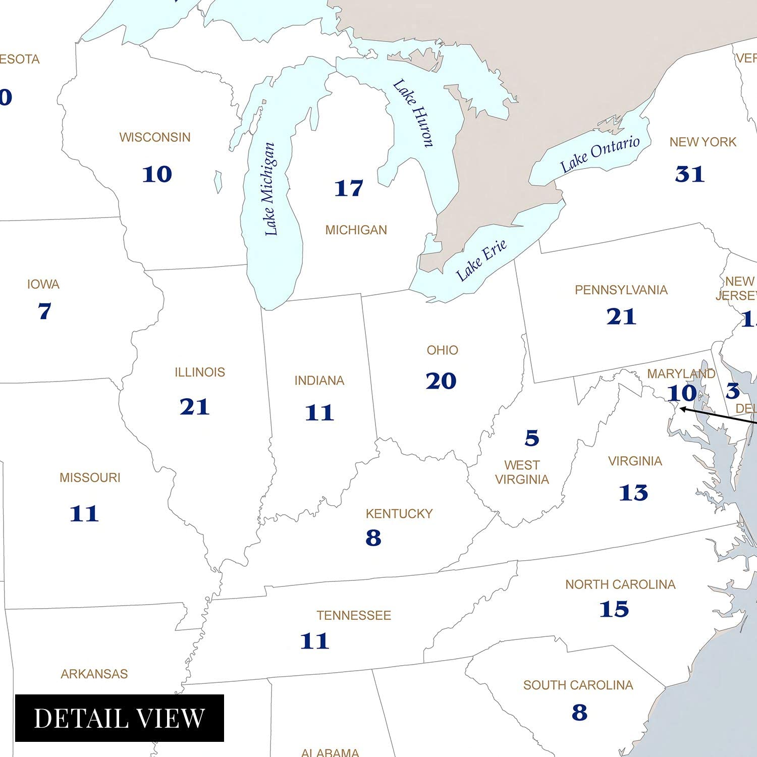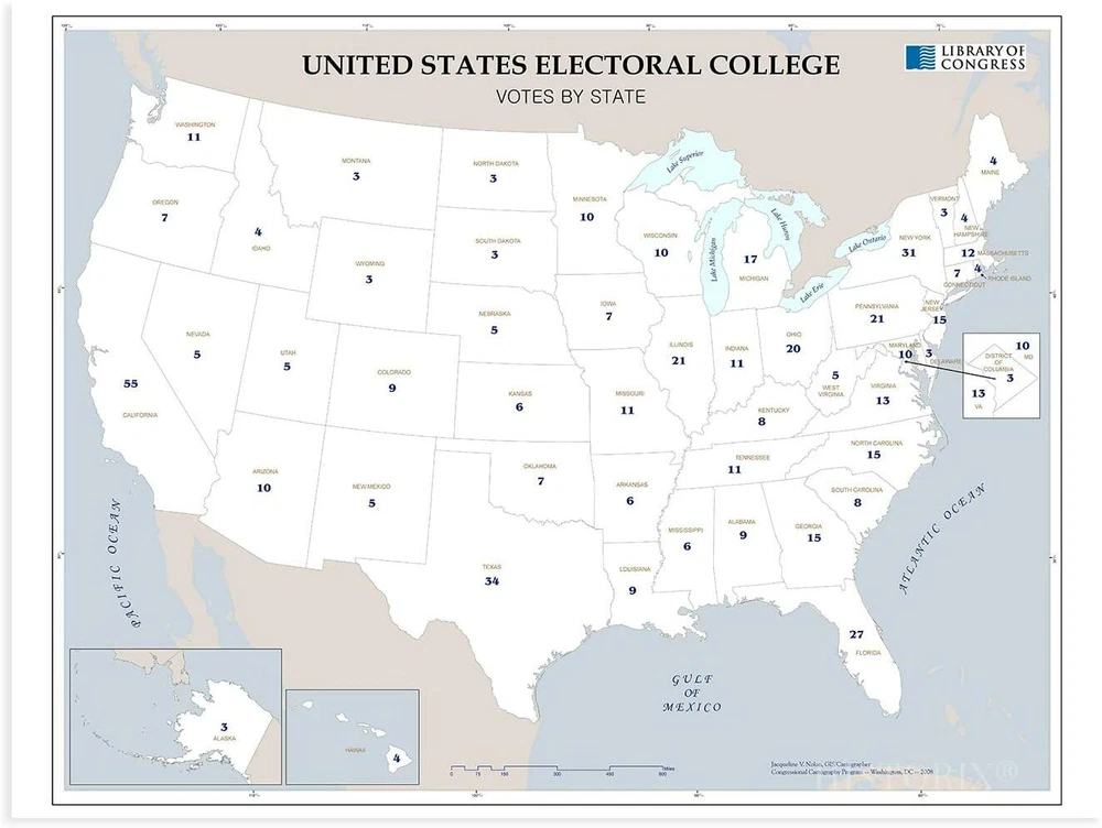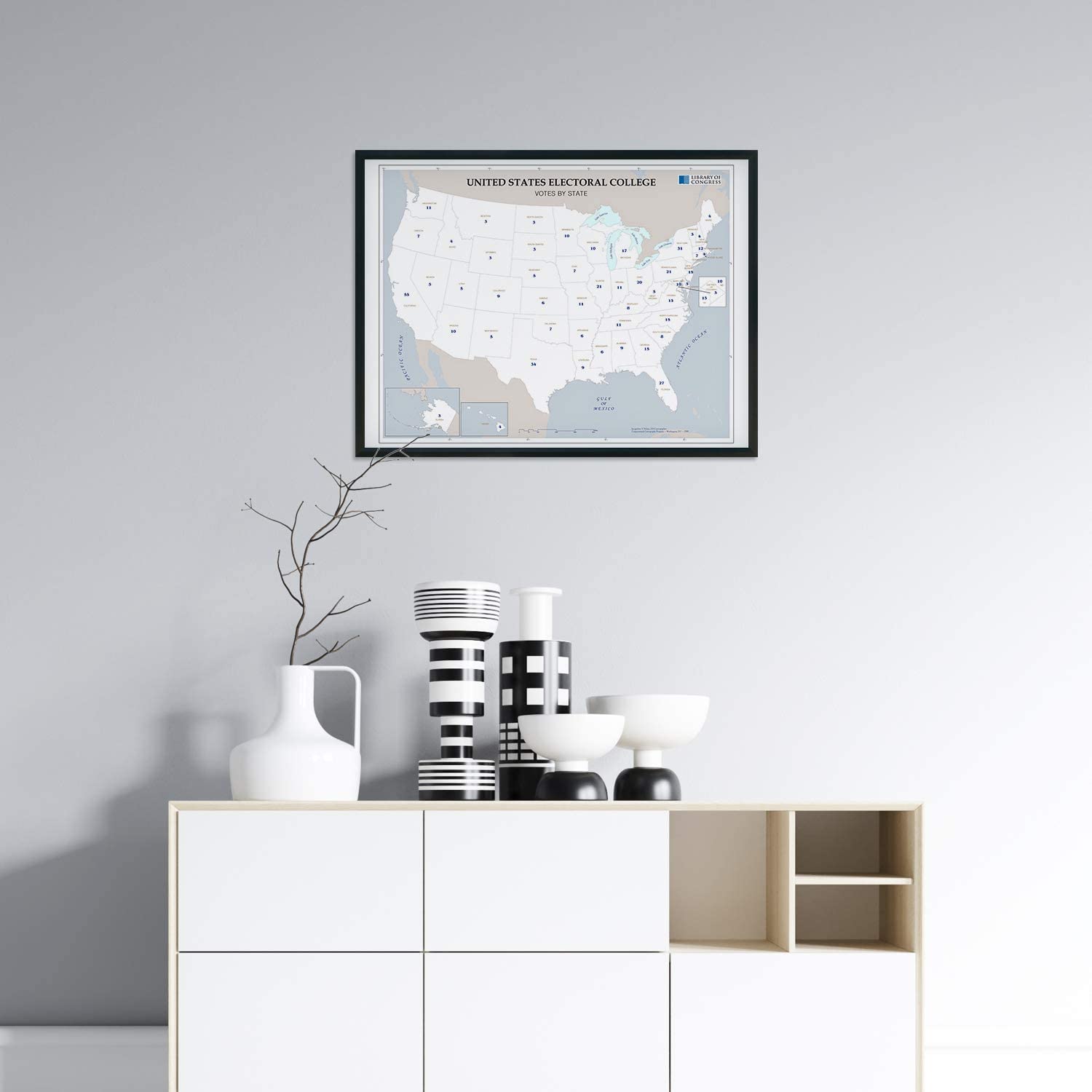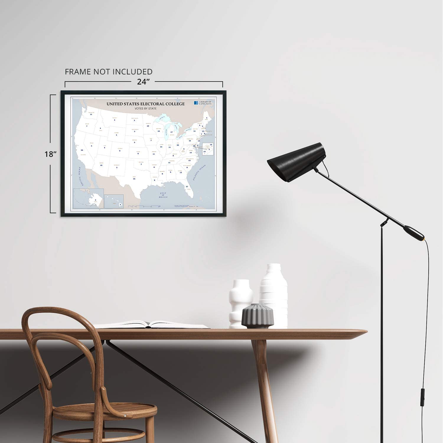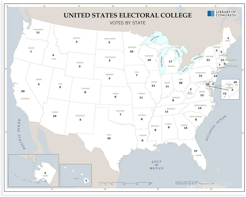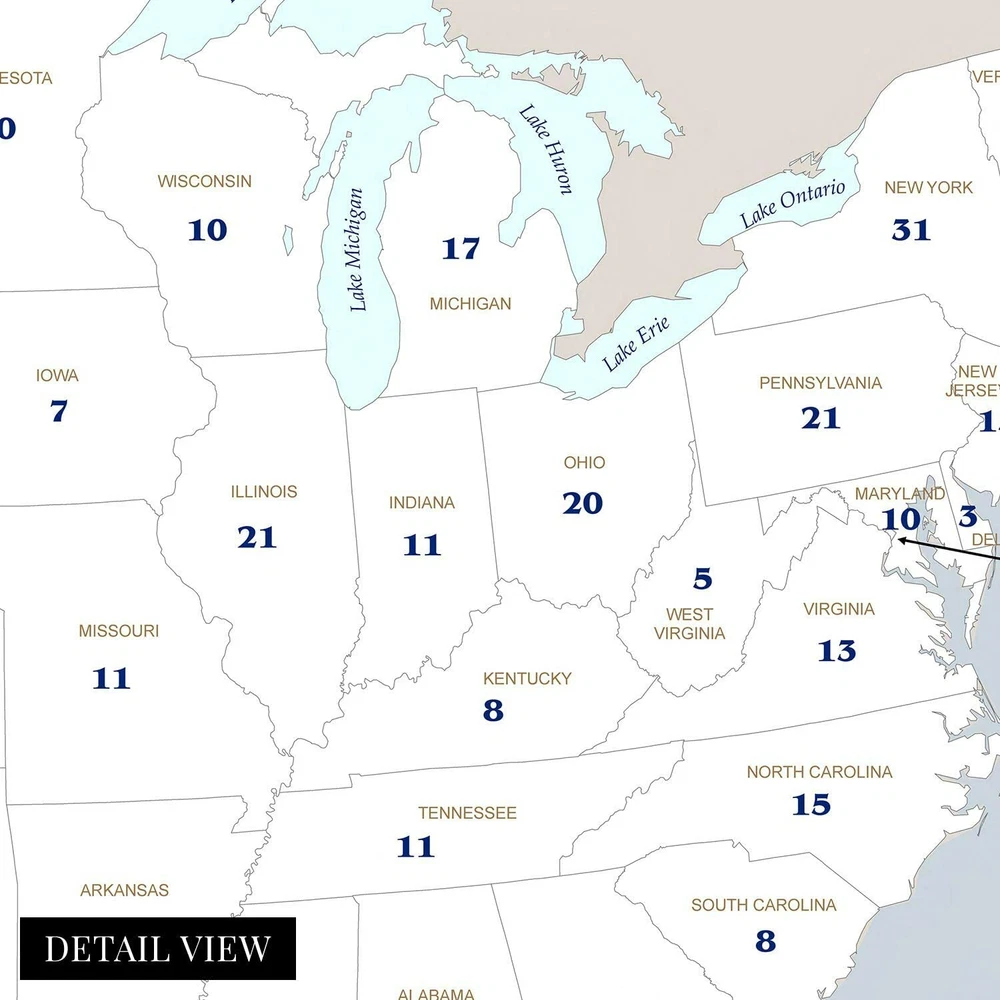 Feature Points HISTORIC PRINTS: You’ll love this high quality map of United States Electoral College Votes by State Map Poster. Our museum quality maps are archival grade, which means it will look great and last without fading for over 100 years. Our print to order maps are made in the USA and each map is inspected for quality. This beautiful artwork is a perfect addition to your themed decor. Maps look great in the home, study or office. They make a perfect gift as well. MUSEUM QUALITY: This high quality map print will be a great addition to your wall art. Don't waste money on cheap-looking, thin paper posters. We use thick, fine art print quality matte paper. Our professional’s choice matte paper displays artwork in high detail without glare. The color is vibrant and text is easy to read. When framed, this map looks absolutely stunning. ACCURATE MAP: This United States Electoral College Votes by State Map Poster is from an original found in the maps and geography division of the US Library of Congress. A true piece of history. See our product description section for more fascinating information about this historic map and its significance. READY TO FRAME: This print includes a 0.2 inch border for a perfect frame fit and look. Our maps are designed to fit easy-to-find standard frame sizes, saving you money from having to pay for a custom frame. Each map is inspected for quality and shipped in a rigid tube. Shipping is fast and free. HISTORIX: We love history and art. Sometimes old maps have tears, folds, separations and other blemishes. We digitally restore and enhance maps while keeping its historical character. All our maps are proudly made in the USA. We stand behind our products with a 100% satisfaction guarantee. Customers all over the world love our historic maps and we know you will too. Additional Information Produced in 2008, this electoral college map illustrates the number of electors from each state that will elect the President and Vice President of the United States. The college was formed with the idea that the President should be elected by the people and that representation between urban and rural voters should be mitigated. With 538 total electors, the election process requires a majority of 270 votes for a candidate to become President. The states choose their slate of electors based on political lines and are convened every four years before the general election. The college is subject to an ongoing debate with supporters arguing that it as a fundamental part of American federalism. Critics say that candidates that in the popular vote should not lose the general election due to a lack of majority in the college. The latter has only happened five times in US history. The college never meets as one central body instead, joining in their respective state capitals on the Monday after the second Wednesday in December. While each state has a slight variation in the process, the college is generally conducted in the same manner. The twelfth amendment requires the Congress to count elector votes then, thus determining the victor. Though it is widely assumed the electors will faithfully vote along party line, there can be faithless electors who break with their party and vote for their political opponent, though these cases have been rare with just over 150 since 1789. Our museum quality giclee print comes printed with archival ink on premium heavyweight matte paper. Shipped in a sturdy cardboard tube your print will arrive ready to be framed. This eye-catching vintage map print makes the perfect gift for anyone that loves history and imagery.