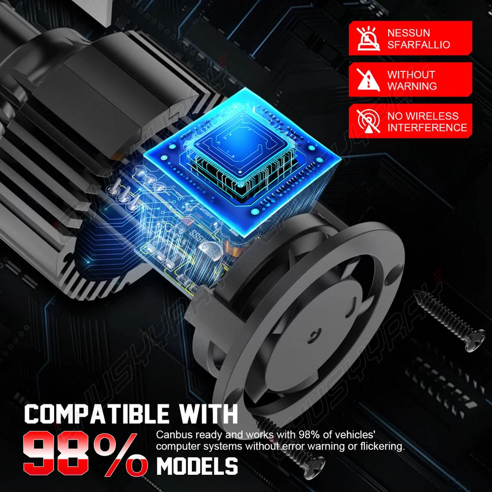 LED Headlight Kit All-in-One Conversion Kit 300% Brighter than Halogen: 100W 6000K cool white, 1w=100lm, with clear visibility and perfect beam pattern, so you can enjoy good vision while driving at night. Super Focused Beam Pattern: led bulbs with 1.0mm ultra-thin centered light emitting. No dark spots or foggy light, do not blind oncoming traffic. 10mins Easy Installation: The LED bulb’s almost 1:1 design as halogen. Plug and play. No other tools are needed 360° Adjustable Beam Pattern: Adopts 360° adjustable locker ring to ensure the best beam pattern. 50,000 hours Lifespan: Led Bulb comes with a copper base board, cold pressed aluminum heat sink and 12,000rmp cooling fan. Better solve the dimming or over heated of led bulbs. Energy-saving: Brighter light output with much less power consumption. Package Included: 4 pcs H9+H11 LED Bulbs . Note:Our LED replaces halogen bulbs ONLY. It does not replace HID or LED from factory. Item Specifics Technology: LED Fitment Type: Direct Replacement Voltage: DC 9-30V Power: 100W/per pair Luminous Flux: 10000LM/per pair Color Temperature: 6500K LED Chips: COB LED chips LED Drivers: Built-in Drivers Lifespan: Over 50,000 hours Waterproof Rate: IP67 Water and Dust Seal, CE, RoHS Operating Temperature: -40℃~+80℃ Warranty: 5 years warranty Application: Headlight High Beam & Low Beam & Foglight DRL Warm Tips: If you are not sure about the bulb size, please send us your vehicles' make/model/year via ebay message to confirm with us before purchasing. Any questions please feel free to contact us, we will help you solve it. Information: a)Compatible List can not show up all Car model. Please check the Correct item size of your vechicle. it will work and fit.Thank you! b)If you are unsure the item fit or not , please do remember send message to tell us your car make, model, year and other information which is helpful to check the item fit or not.For example: For 2004 Ford F 150, high/low beam For 2015 RAM 1500 with projector-type, high beam For 2019 Ford F 150 ,XL Crew Cab Pickup 4-Door 2.7L On Nov 19, 2024 at 02:18:40 PST, seller added the following information: