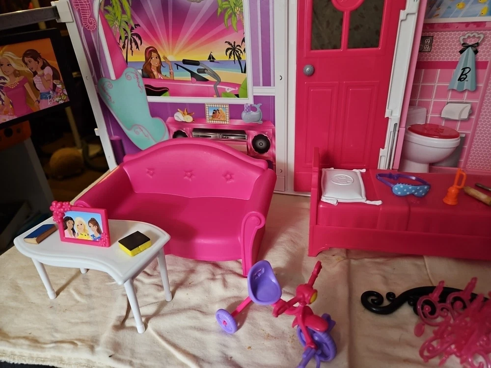 2009 Mattel Barbie Glam Vacation Beach House Fold N' Go Playset with Extras