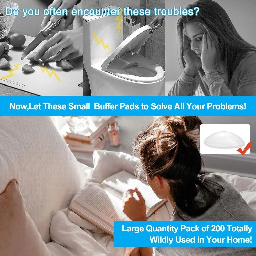 200PCS Cabinet Bumpers Clear Rubber Self Adhesive, Soft Round Product Details Brand: FATLODA Material: Silicon Color: Round Surface Recommendation: Hardwood Shape: Round BEST VALUE PACK- FATLODA 200 PCS pack contains clear cabinet door bumpers of 3/8 inch in diameter and 3mm/0.1" in thickness. The clear bumpers self adhesive suitable for cabinets, drawers, cupboard doors, table tops, laptop, cutting boards, picture frames, etc. STRONG SELF ADHESIVE- FATLODA rubber cabinet door bumpers are easy to use with the built in self adhesive that easily sticks to tables, desks, banisters, cabinets or any other furniture that needs cushioning or sound dampening. The cabinet rubber bumpers are suitable for sticking to glass, wood, metal, ceramics, granite, etc. SOUND DAMPENING & CUSHIONING- FATLODA silicon cabinet door bumpers clear not only help to reduce the noise caused by a closing cabinet door, but also prevents surface damage in some cases behind doors, drawers, tables. These kitchen cabinet stoppers rubber can maximize prevent damage to furniture. CONCEAL DESIGN- FATLODA cabinet pads for doors design is like a clear color like a drop of water, which can be integrated with any color without affecting your beautiful home decoration. Just peel off the drawer bumpers for cabinets and paste it where you need it. Easily tear off without leaving a trace. CUSTOMER SERVICE- FATLODA take pride in providing the highest quality and most durable cabinet bumpers sound dampening on the market. If you have any problem at all, please contact us so that we can resolve your problem.