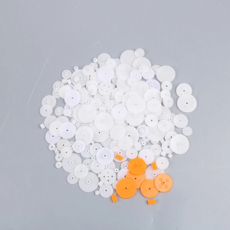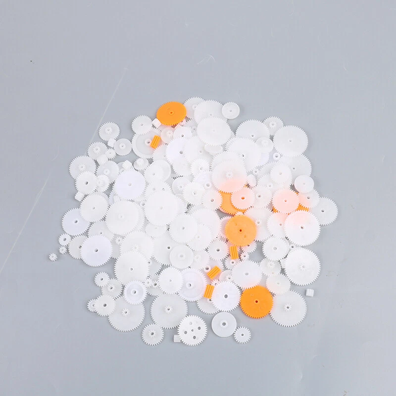Reminder: Gear packs are shipped randomly, and each pack of gears is different. Some packs may have more large gears, some small gears, and the aperture is also random. Not every pack contains 0.8-3mm. Aperture gears, there will be many duplicate gears, not 200 types of gears, but 200 gears per pack. material: Plastic Modulus: 0.5 Model: Face gear, worm, crown gear, main shaft gear Aperture: 0.8-3mm Use: DIY technology small handmade toy accessories material Package includes: 1 set of plastic gears (200 pcs) This hybrid gear pack includes 1 pack of approximately 200 0.5 modulus plastic gears in random sizes and random bores. Each pack is different and contains a variety of bores ranging from 0.8-3mm, including main shaft gears, face gears, crown gears and worms. And so on different types of gears. Products will be constantly upgraded, appearance and color may change, please don't mind. If you have a color or appearance request, please consider it before placing an order. On Sep 13, 2023 at 22:52:14 PDT, seller added the following information: