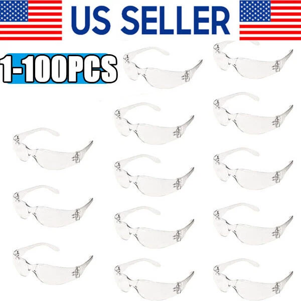 200Pack Protective Safety Glasses Clear Lens lot Eyewear Anti Scratch Work UV US