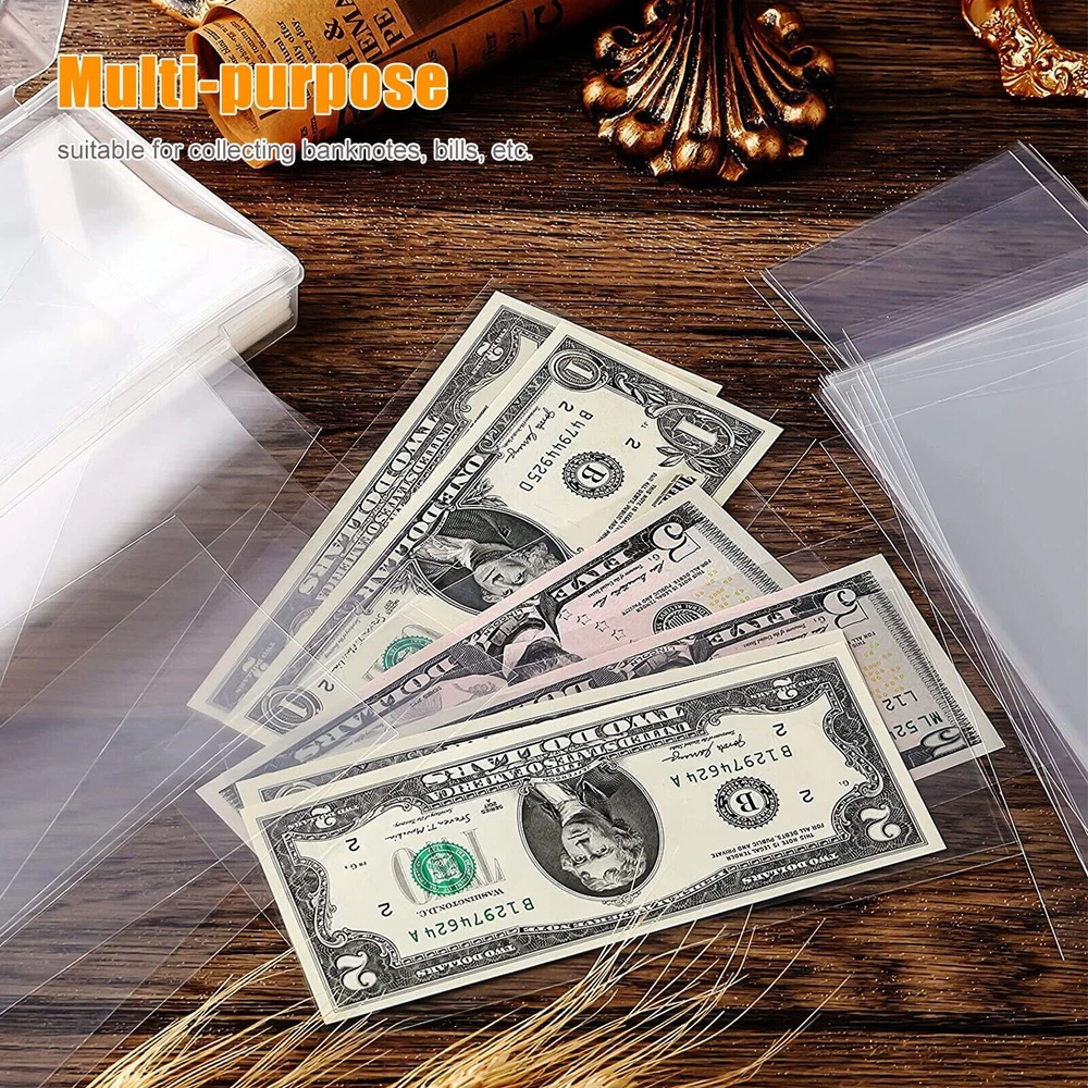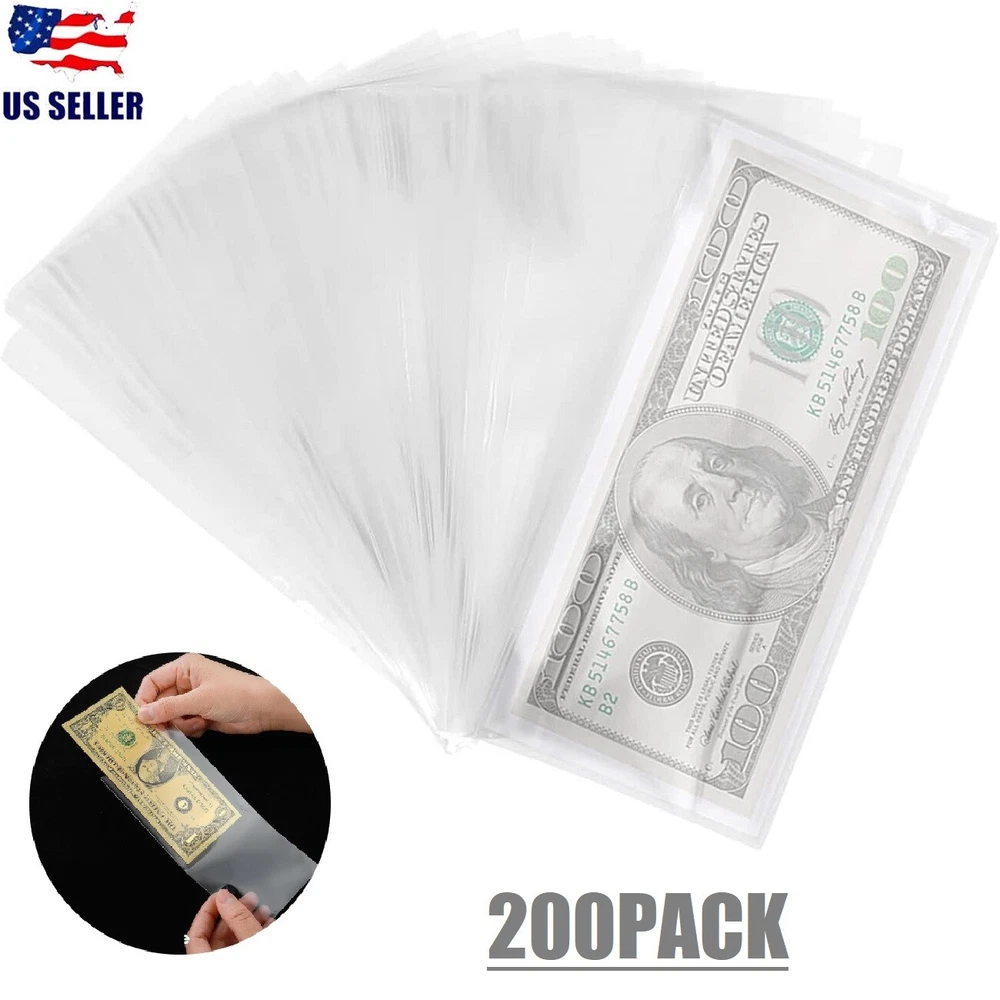 200Pcs Currency Sleeves Paper Money Bill Holder Banknote Storage Protector Case